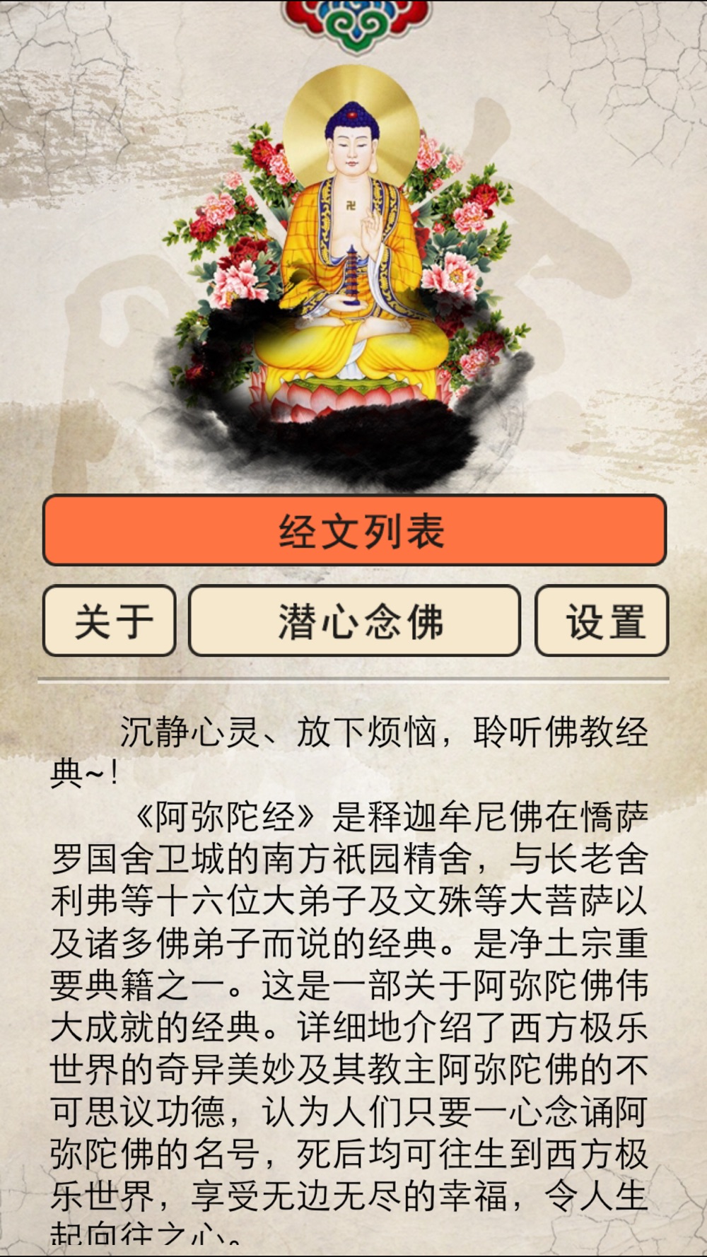 《阿弥陀经》是释迦牟尼佛在憍萨罗国舍卫城的南方祇园精舍,与长老舍利弗等十六位大弟子及文殊等大菩萨以及诸多佛弟子而说的经典。是净土宗重要典籍之一。这是一部关于阿弥陀佛伟大成就的经典。详细地介绍了西方极乐世界的奇异美妙及其教主阿弥陀佛的不可思议功德,认为人们只要一心念诵阿弥陀佛的名号,死后均可往生到西方极乐世界,享受无边无尽的幸福,令人生起向往之心。