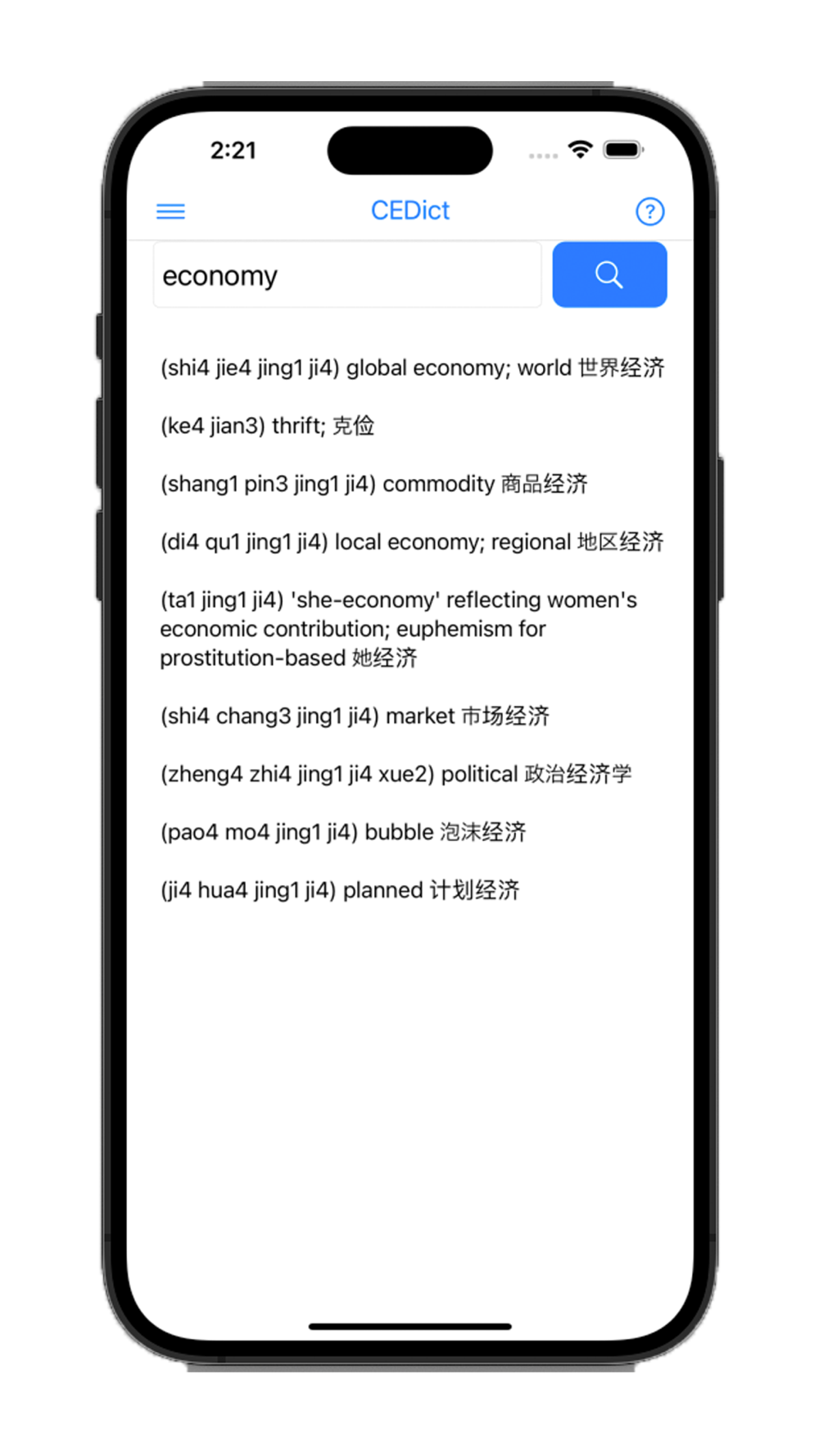 English-Mandarin (Simplified Chinese) two-way bilingual dictionary.