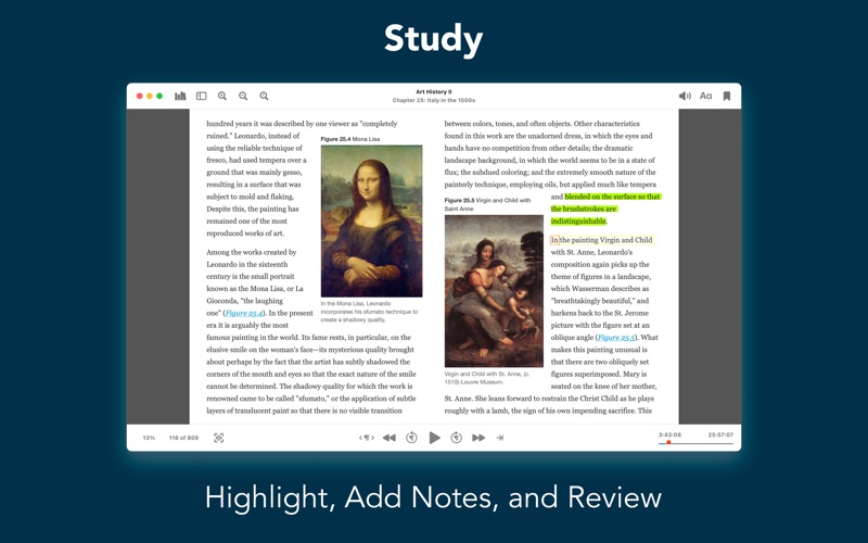 - Bookmark, highlight and take notes.