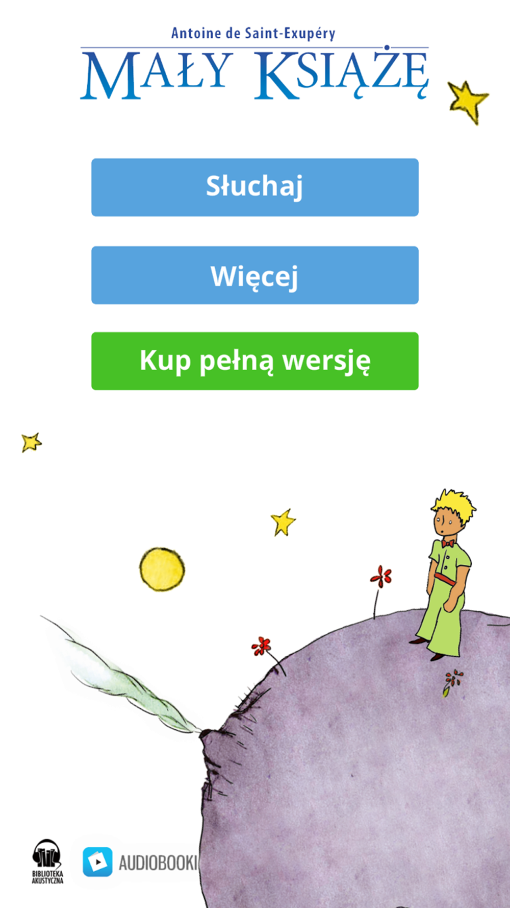 Mały Książę to piękna, poruszająca opowieść o dorastaniu, o prawdziwej przyjaźni, miłości i odpowiedzialności za drugiego człowieka. To historia chłopca, który przemierza kosmos próbując zrozumieć świat dorosłych. A także opowieść o dorosłym, którego życie zmienia się po spotkaniu z Małym Księciem . Książka należy do klasyki literatury światowej. Została przetłumaczona na ponad 170 języków. Jest to również jedyna książka Exupéry’ego, której nadał formę baśni i którą sam zilustrował.