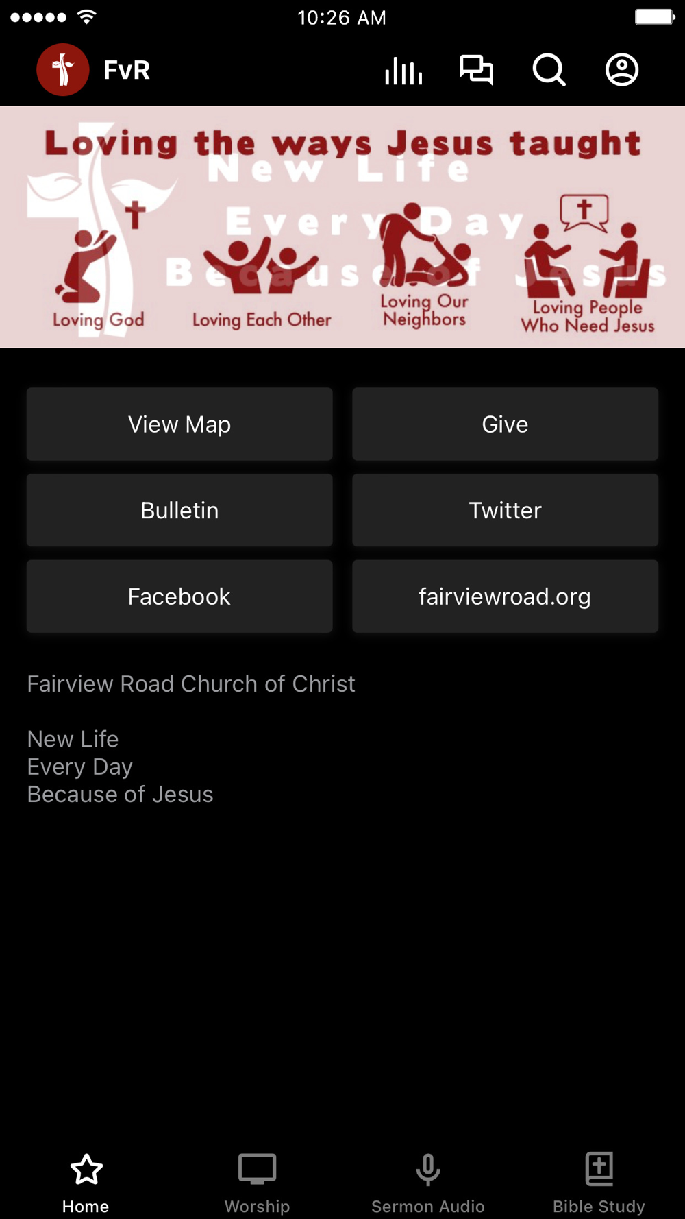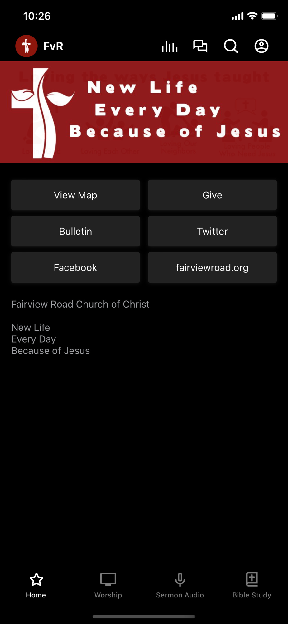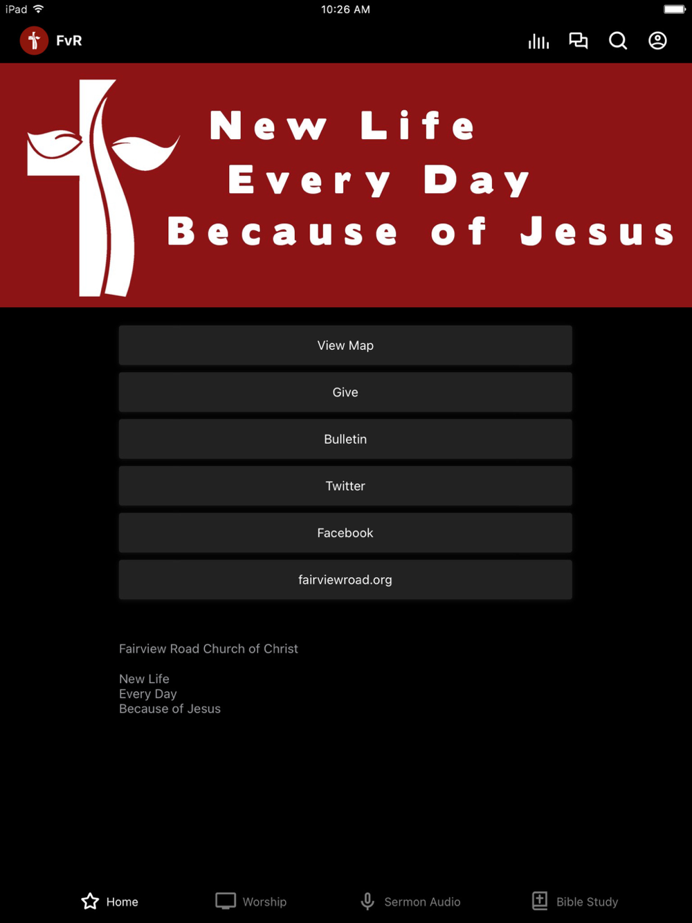 The Fairview Road Church of Christ App was created with the Subsplash App Platform.