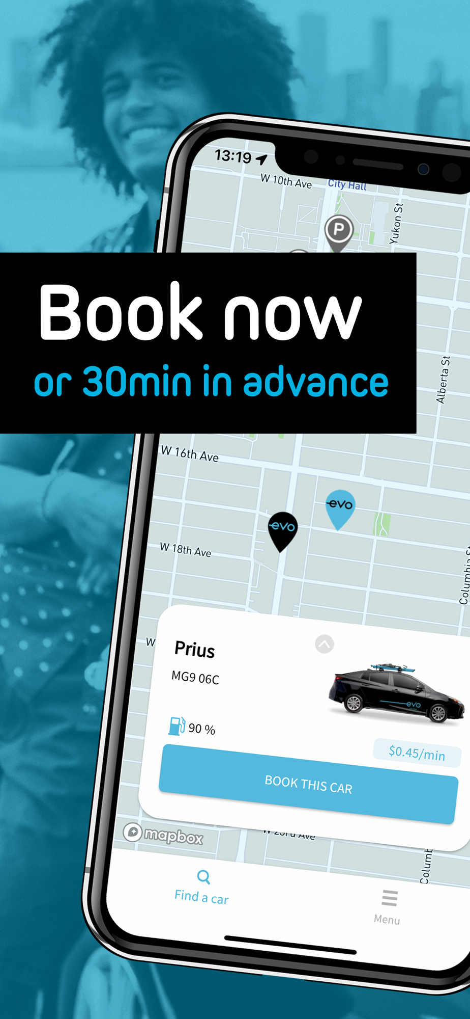 • Find an Evo 24/7 by checking out the real-time map