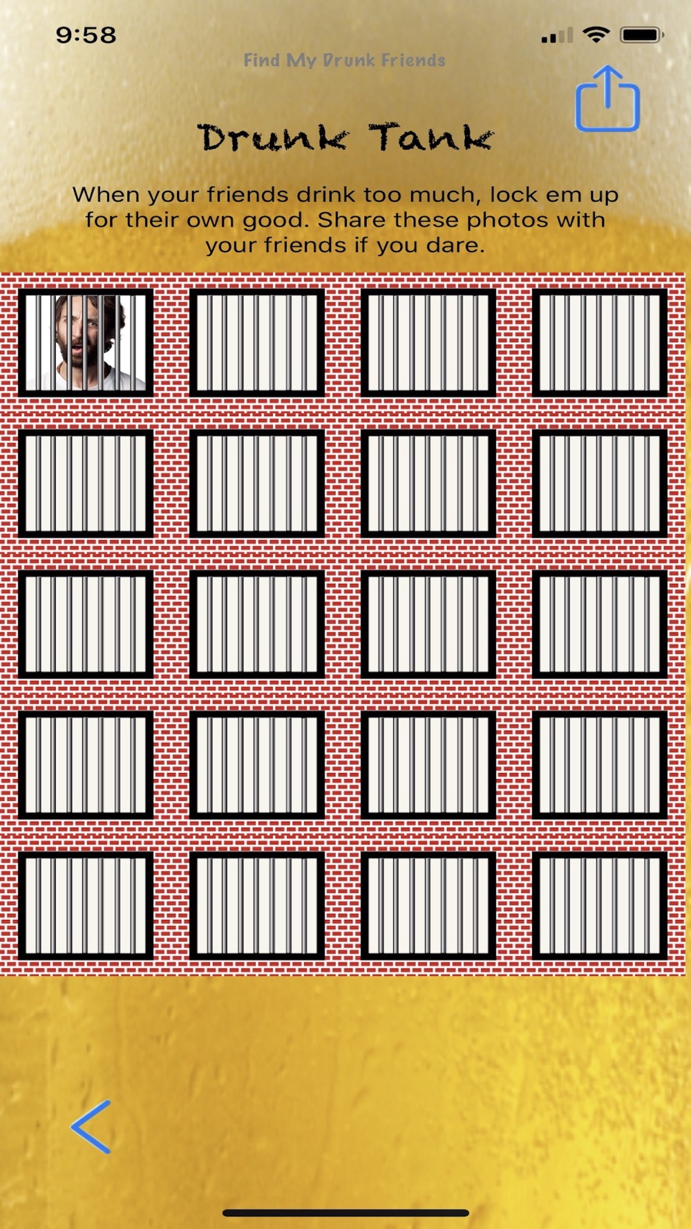 The app also has a ‘drunk tank’ where you can lock-up your friends if necessary. Then you can post their drunk tank photo to your facebook page.