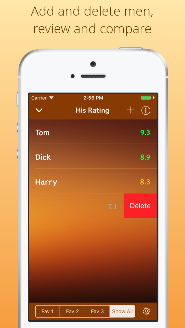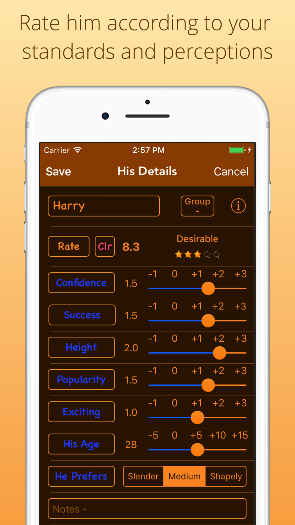Enter a few simple details and the app calculates his rating. It's simple, fun and a great way to keep track of the men in your life!