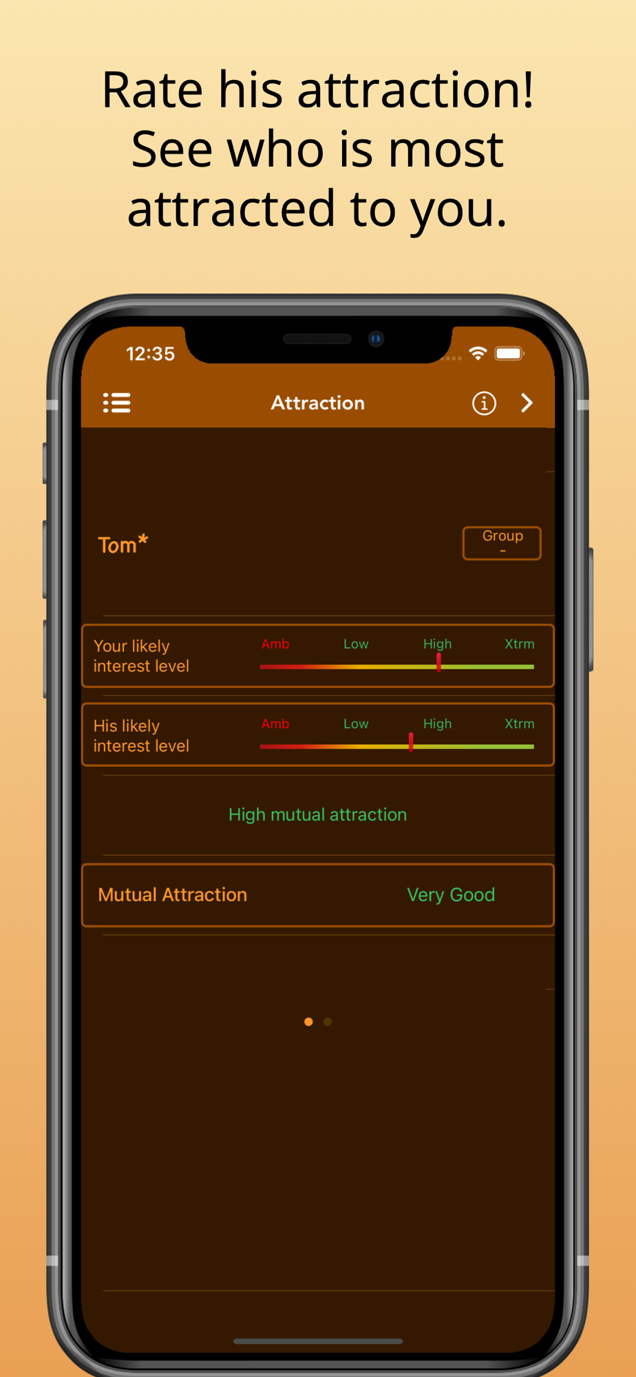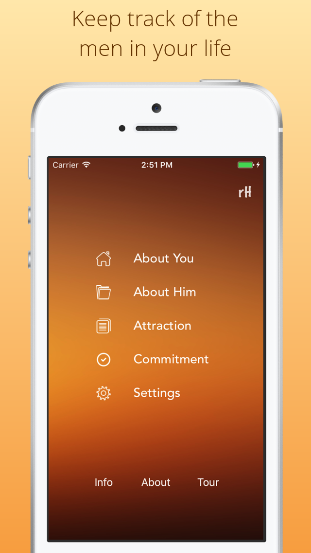 Additional in app purchases allow you to also rate his interest, attraction, his long term commitment and the future of the relationship.