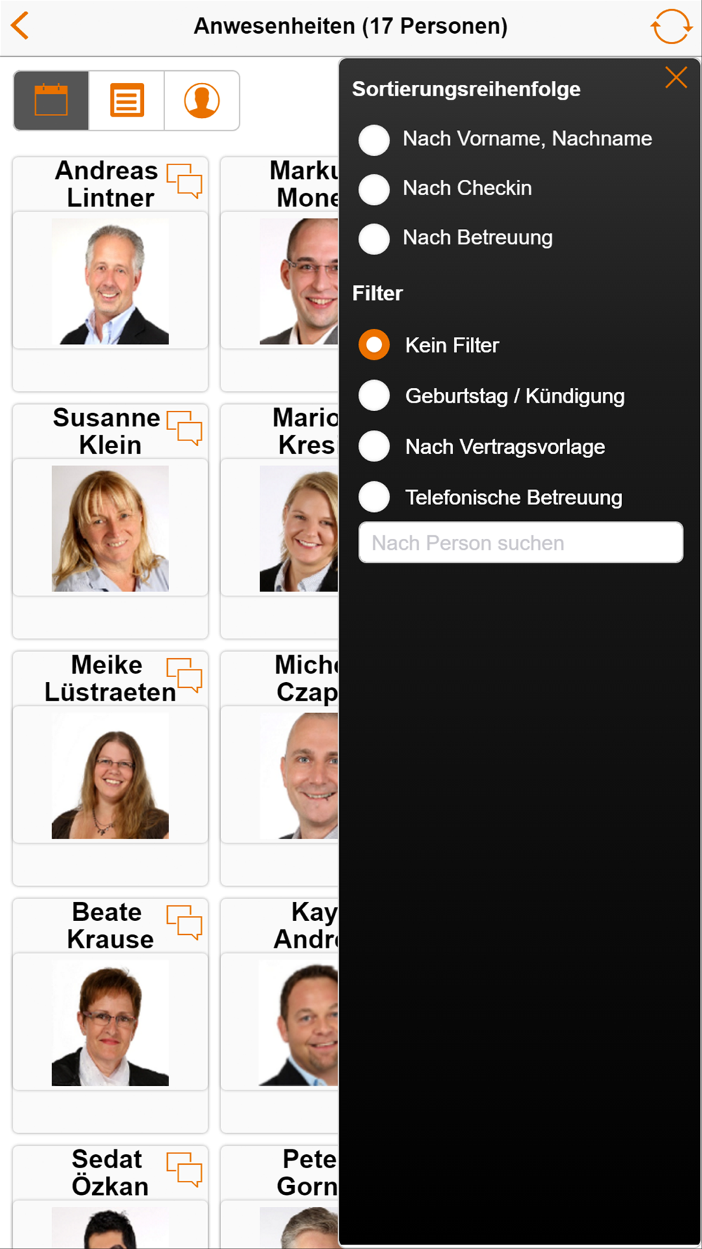 4.) Anzeige der aktuell eingecheckten Mitglieder mit Bild