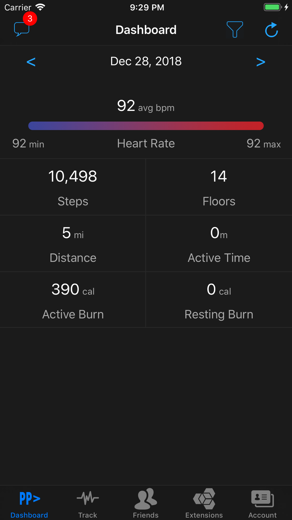 * Dashboard view to quickly display your fitness stats for today or scroll through past days' totals