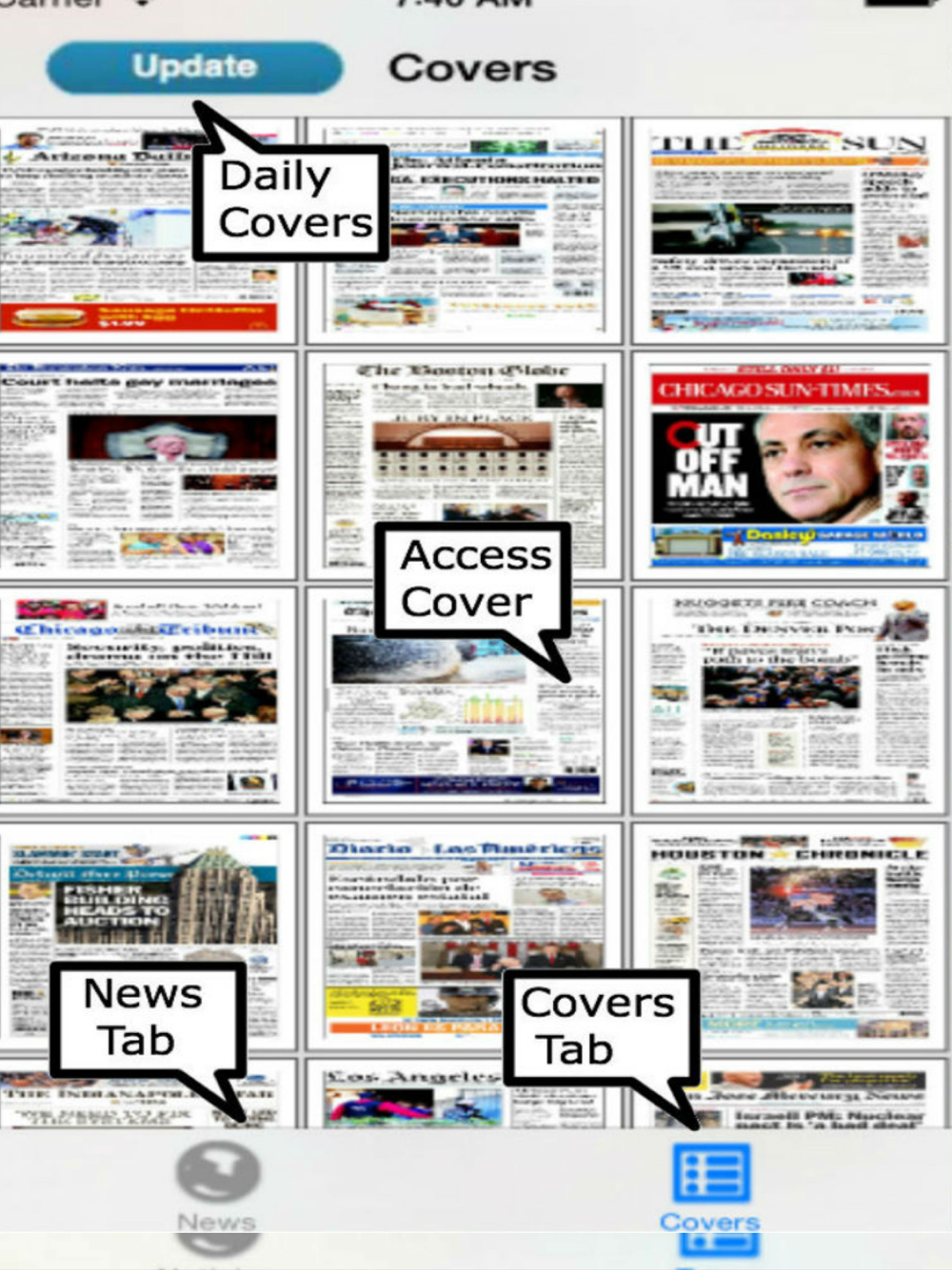 Tab1 : Access news Rss major US newspapers . Also the news are separated by content.