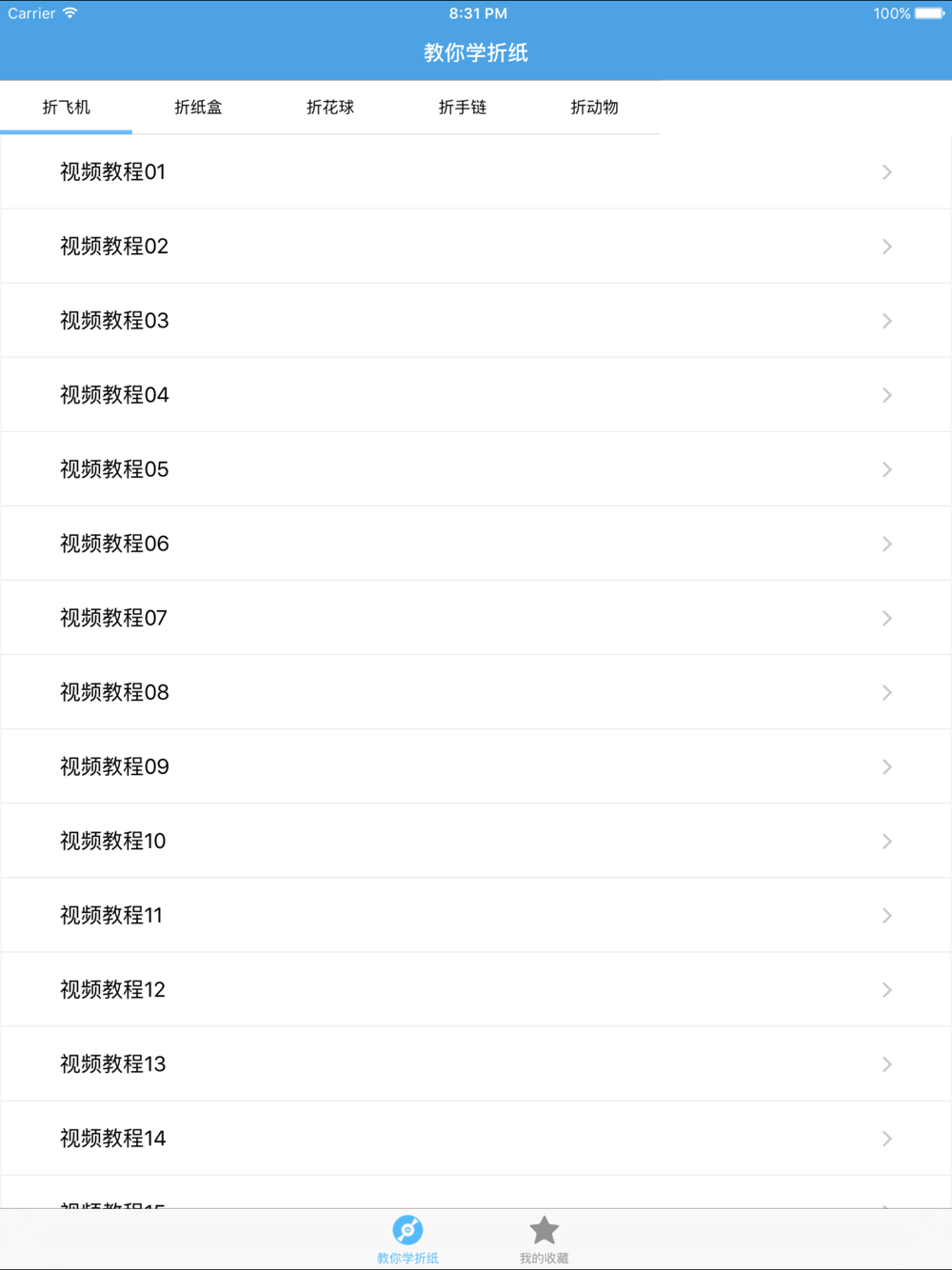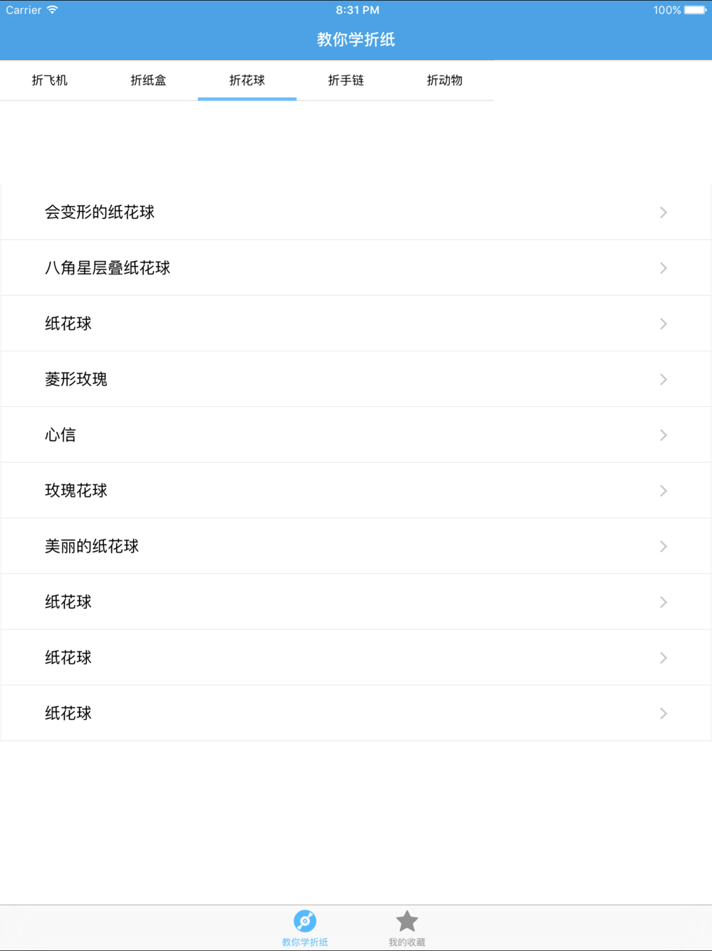 青蛙, 螳螂, 小白兔, 小虫虫, 小刺猬, 小海豹, 小猴子, 小黄狗, 小老虎, 小花猫, 小企鹅, 小乌鸦, 小蜈蚣, 小熊, 小鸭子, 小鹦鹉, 红蜻蜓, 飞碟, 霸王龙, 白胡子小黑猫, 白天鹅, 蛋筒冰淇淋, 鳄鱼, 黑白奶牛, 红蜻蜓, 会动的青蛙, 甲虫, 尖耳朵的小狗, 腊肠狗, 六角星, 绿色小蜥蜴, 毛毛虫, 母子白天鹅, 汽车, 扇子, 蛇颈龙, 神仙鱼, 掌上风车, 五角星, 相框, 小公鸡, 小狗, "小圆帽, 小猪, 牙签套, 野猪, 鱿鱼, 蚱蜢, 彩色鱼, 组合型青蛙共139种折法。