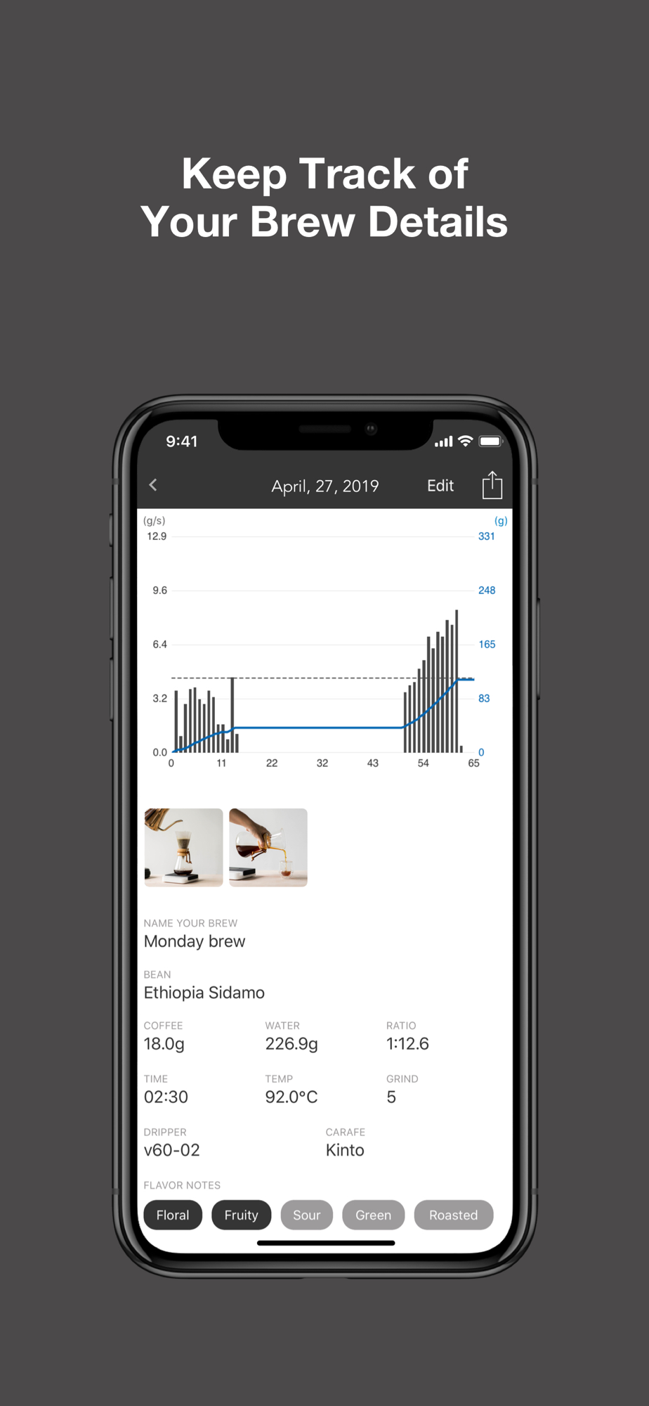 Features: Log-a-brew: Log your brewing process, methods, notes, and coffee flavors, brew better coffee with the acaia coffee scale. Real-time Visualize Brewing Print : improve coffee brewing with the real-time flow charts that reflects your pouring speed, flow rate, learn the way of coffee extraction and brew a mind-blowing cup of coffee with great flavor.