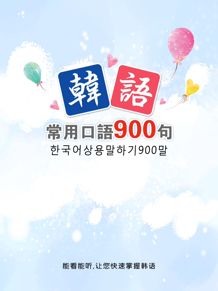 韩语生活中最常说的900句app,将会令各位韩语初学者的韩语口语表达准确、地道,快速有效地学会各类简单日常生活用语,满足出国旅游与留学工作的基本需求,让我们疯狂地练习韩语口语900句吧!