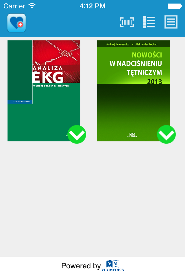 Biblioteka to aplikacja, która umożliwia dostęp do książek i czasopism medycznych wydawnictwa Via Medica w formie e-booków. Publikacje są dystrybuowane wśród lekarzy za pomocą bezpłatnych voucherów.