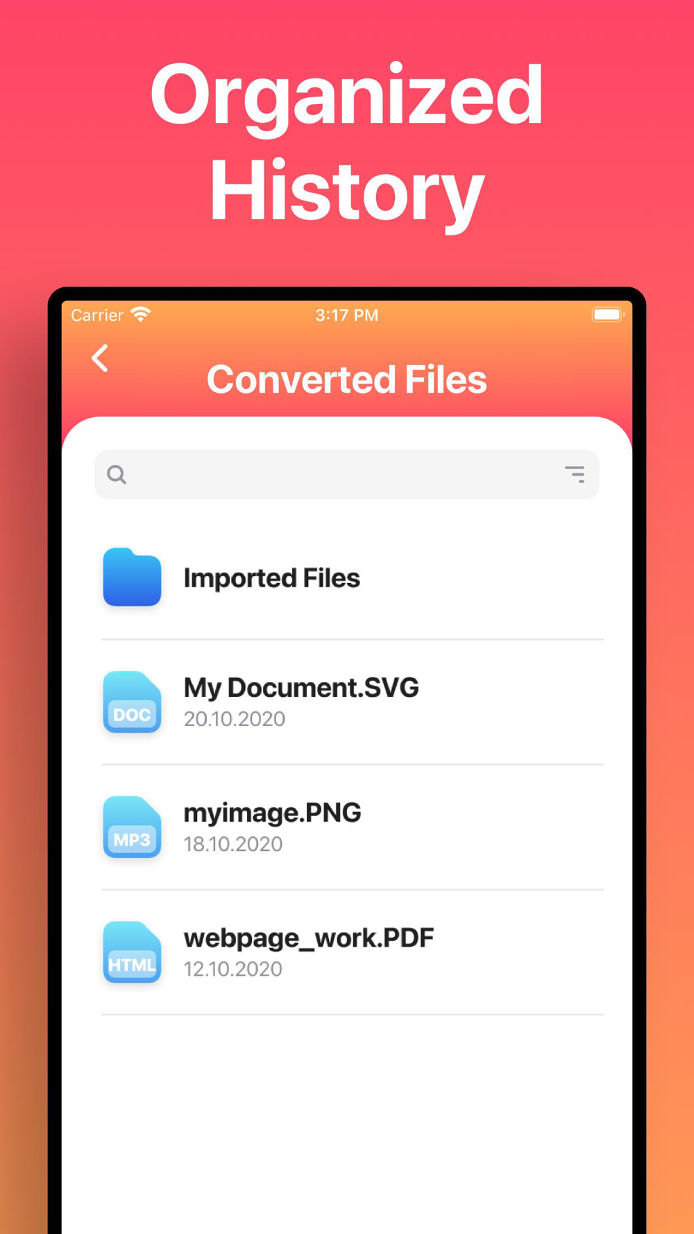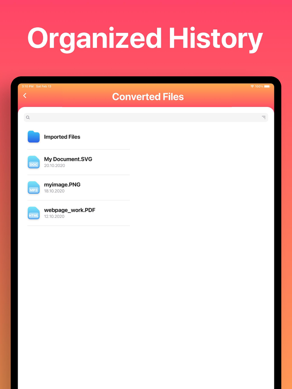 Save, Share or Open your converted files in your favorite apps immediately. You can even browse your previously converted files with our in-app file browser.