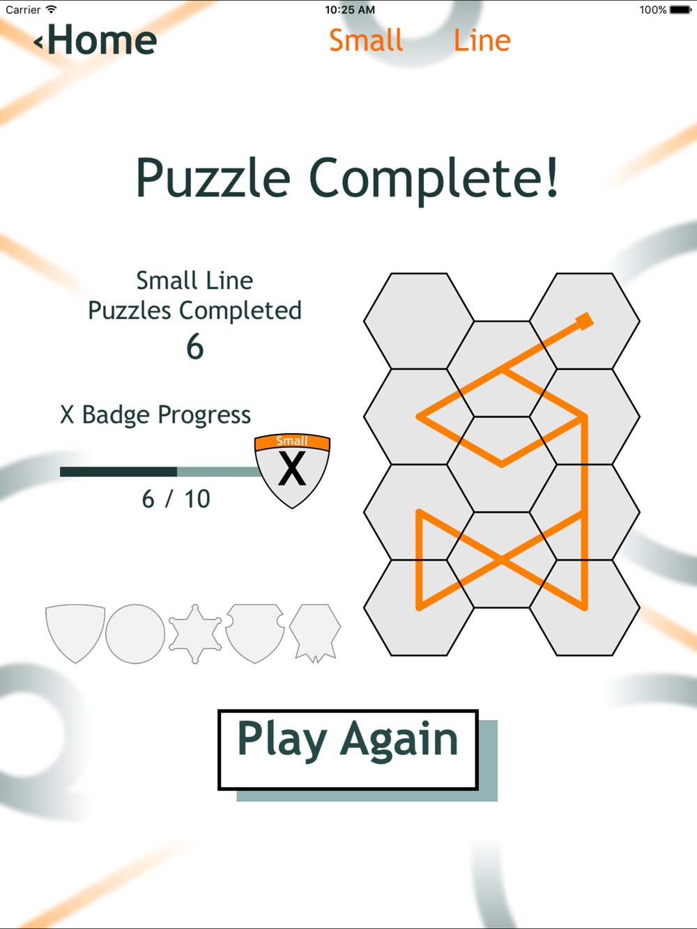 Play 3 different sized puzzles (Small, Medium, and Large) with either Curved Lines, Straight Lines or Both. Once you've played at least one of each type you will unlock the Pic Puzzle. Make a puzzle out of any of the photos on your iPhone or iPad.