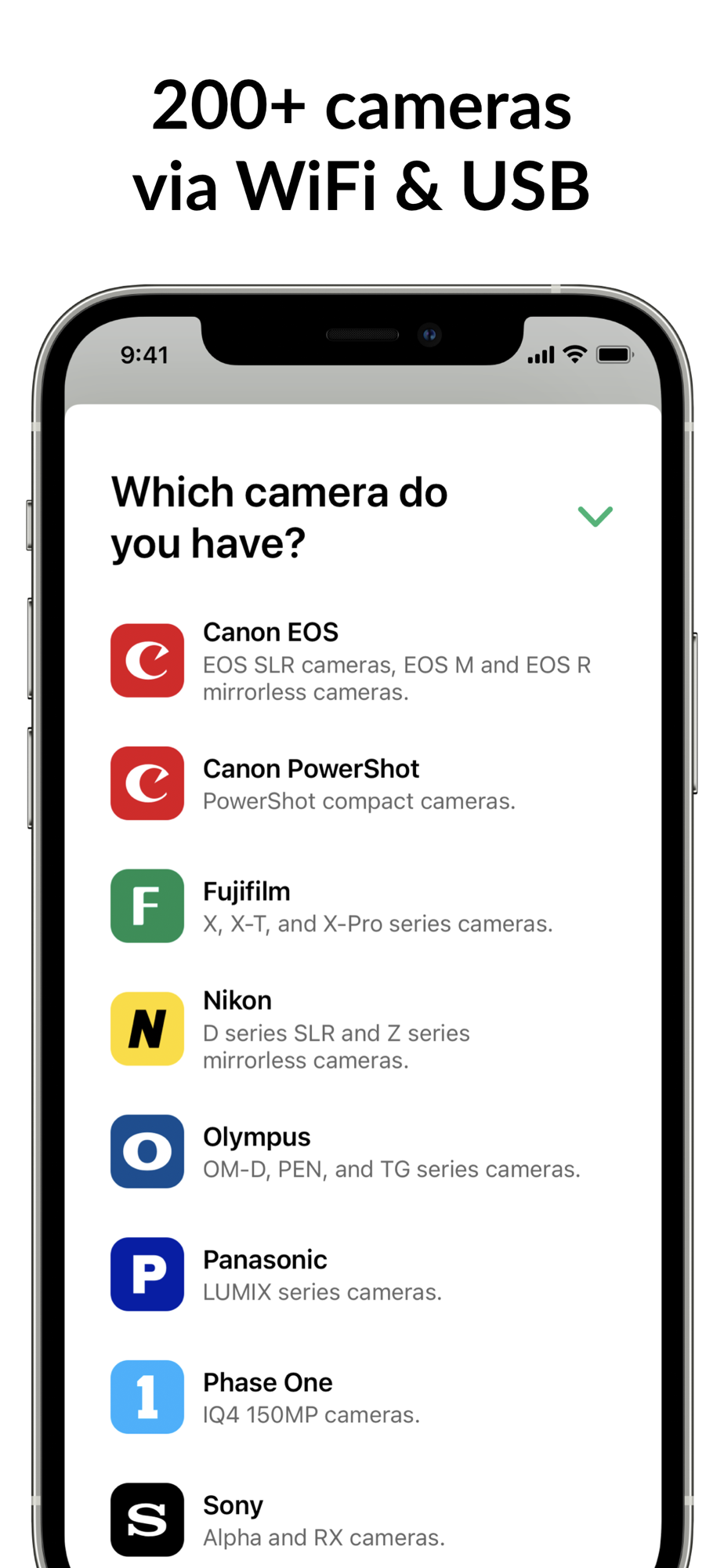Compatible with more than 200 different cameras* from the biggest manufacturers, Cascable connects via WiFi and USB* for super-fast image importing and much more.