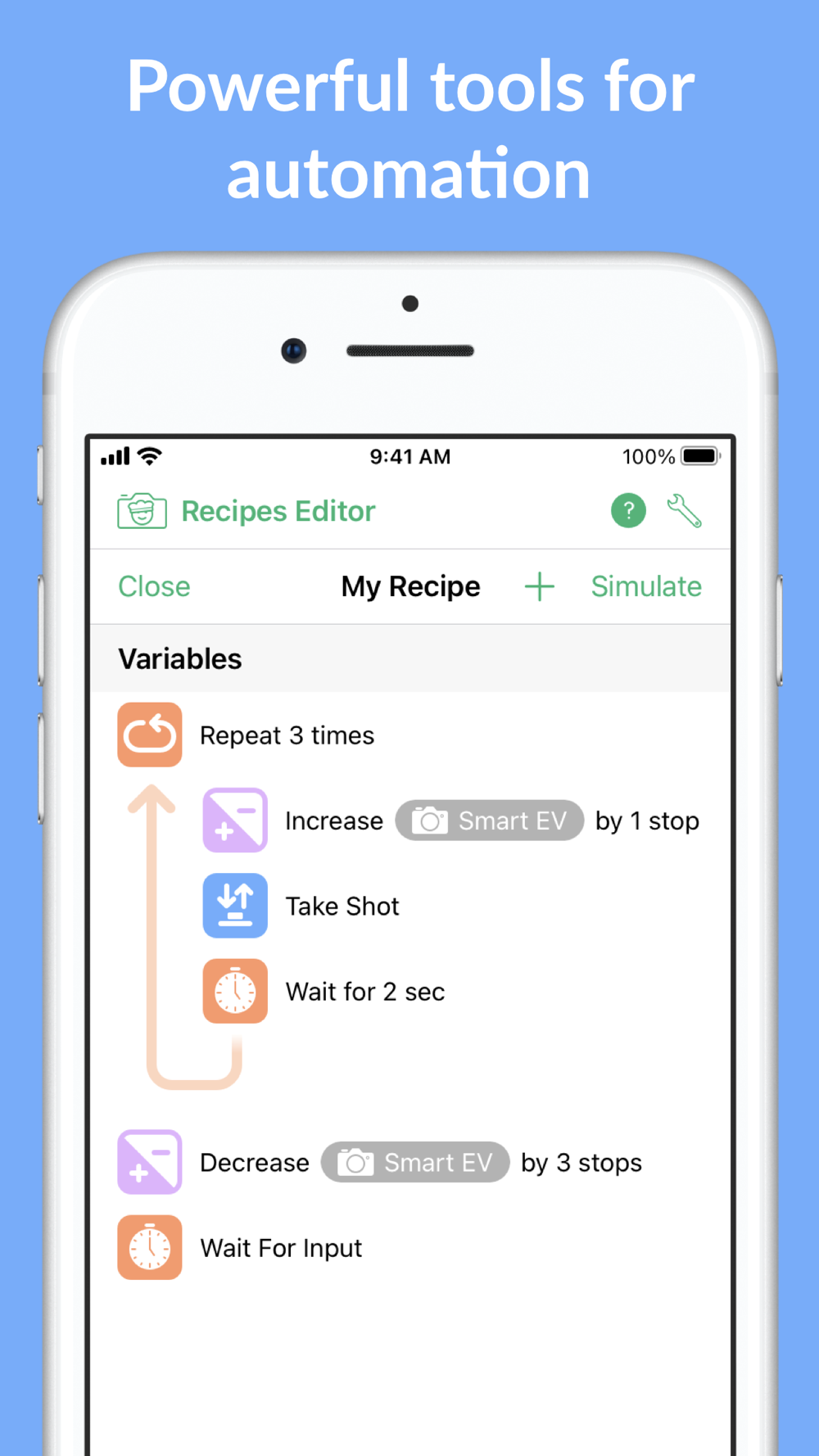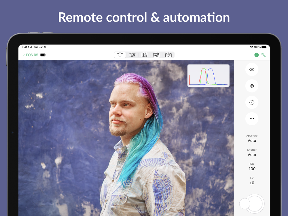 - Full control of your camera's exposure and other settings right from your iPhone or iPad.