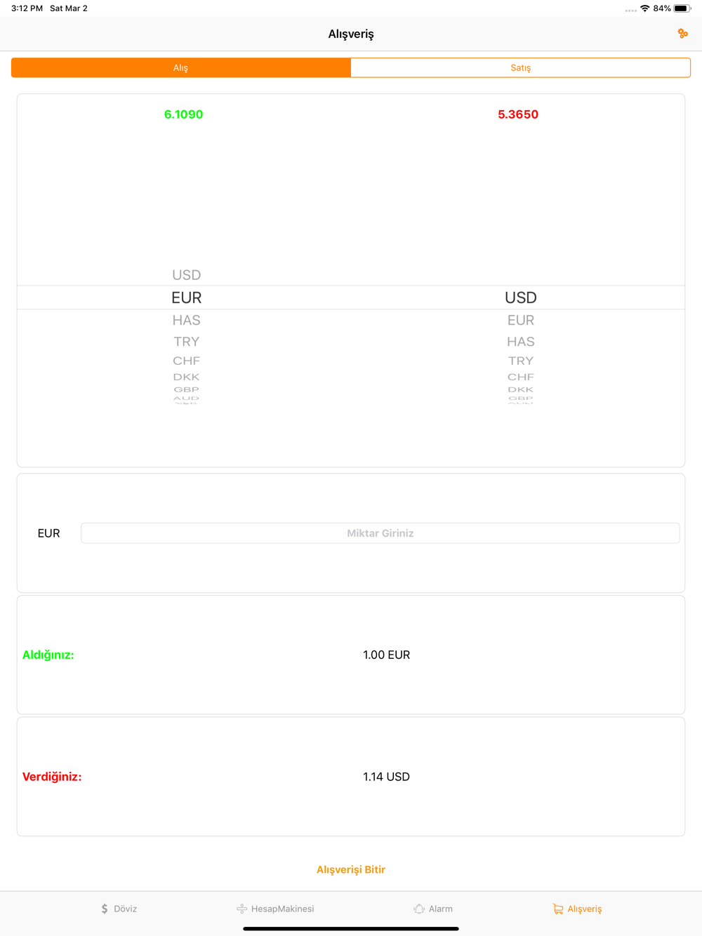 *Hesap makinesi ekranında seçtiğiniz kurlar arasında alım satım simulasyonu ile alışveriş yapmadan ön bilgi edinebilirsiniz.