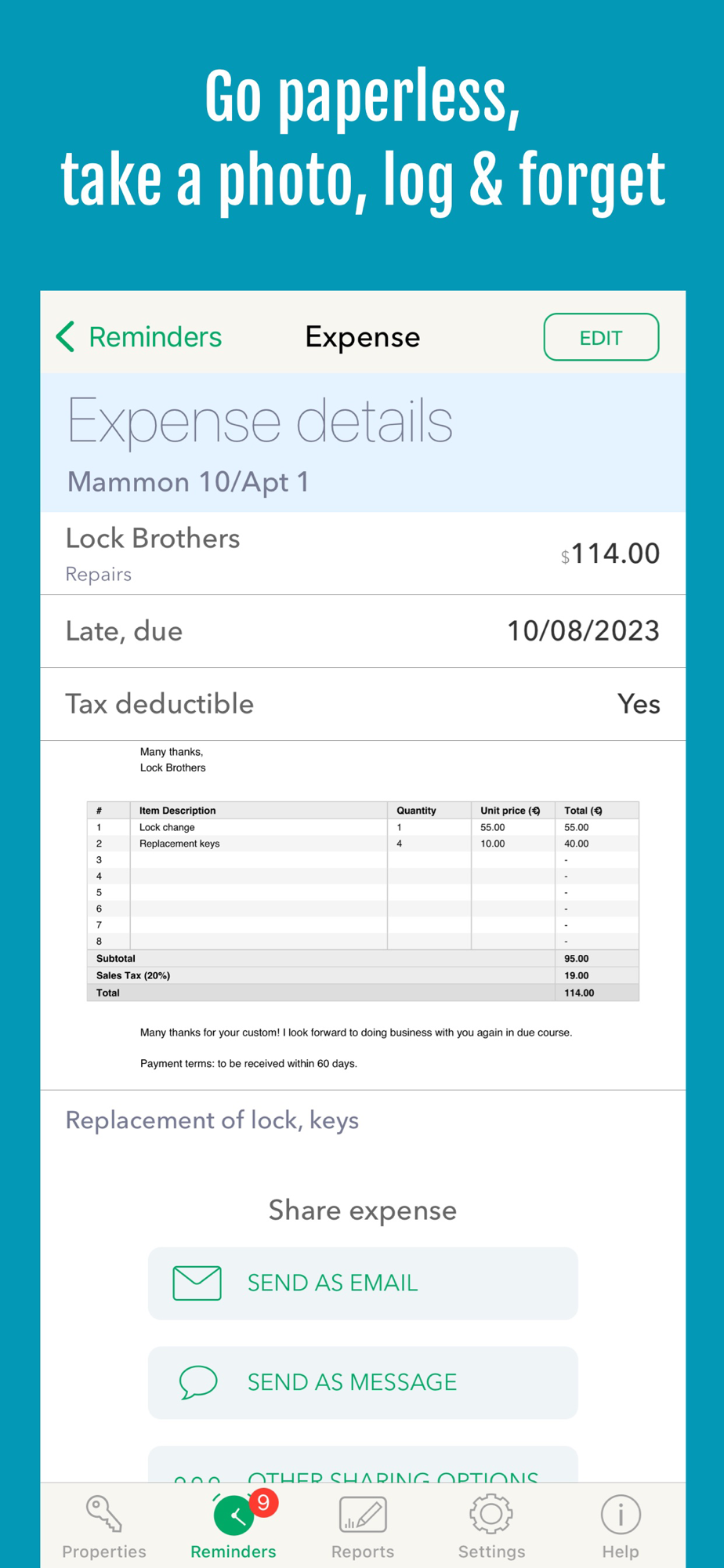 Manage your private landlord business – track tenants, rent payments, invoices and expenses, keep safety and maintenance records, track of tenant balance and payment history, get instant financial reports and useful reminders to be an even better landlord.