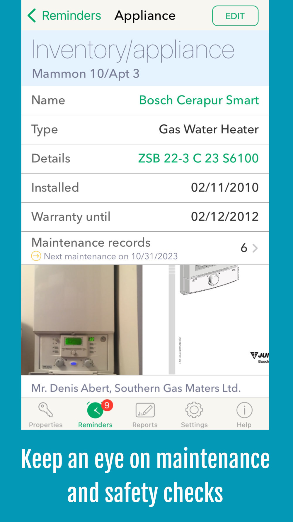 - Keep track of inventory in the property, manage appliance safety checks/maintenance records