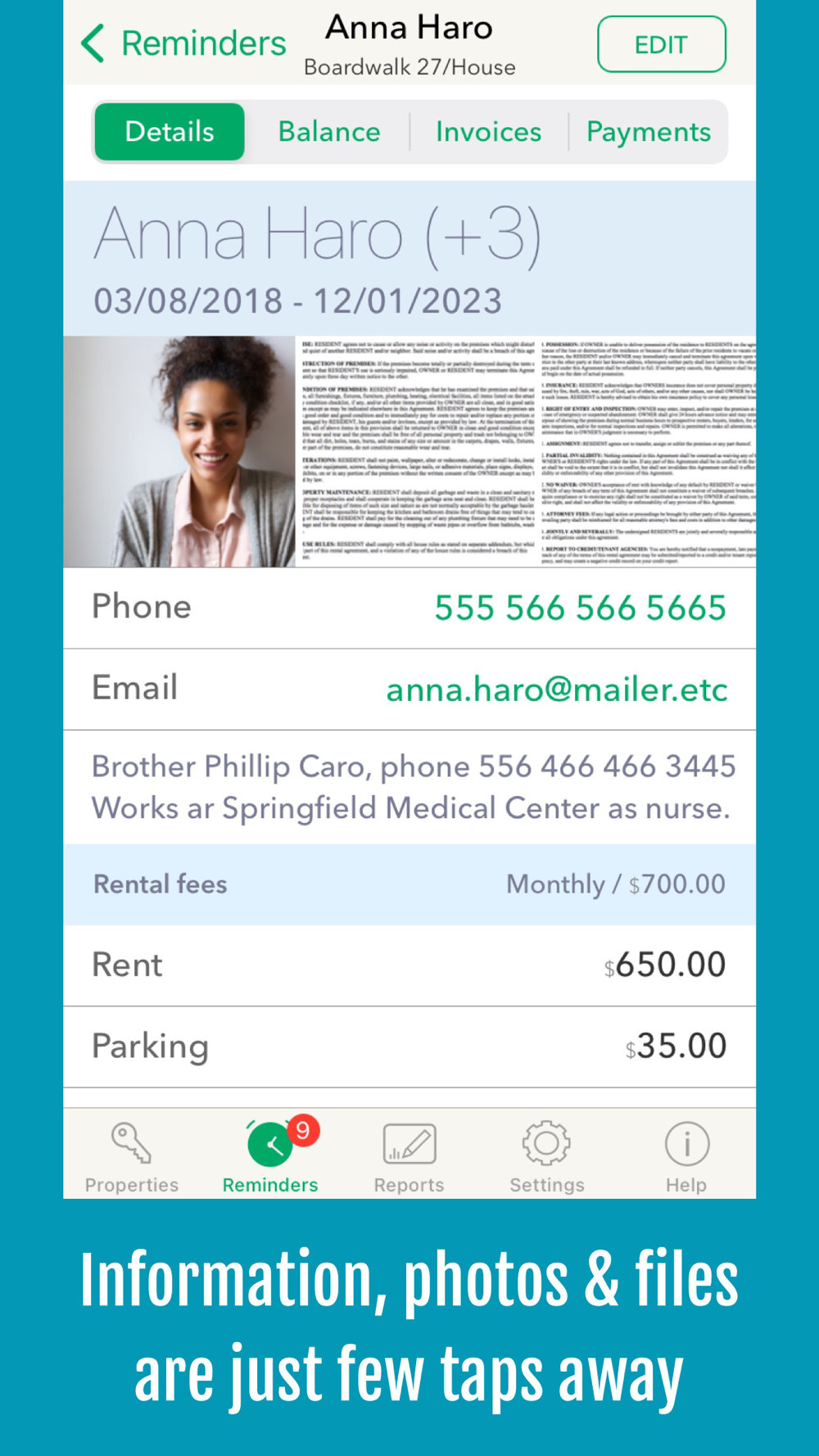 - Get reminders for outstanding payments and expenses due, lease agreement renewals etc.