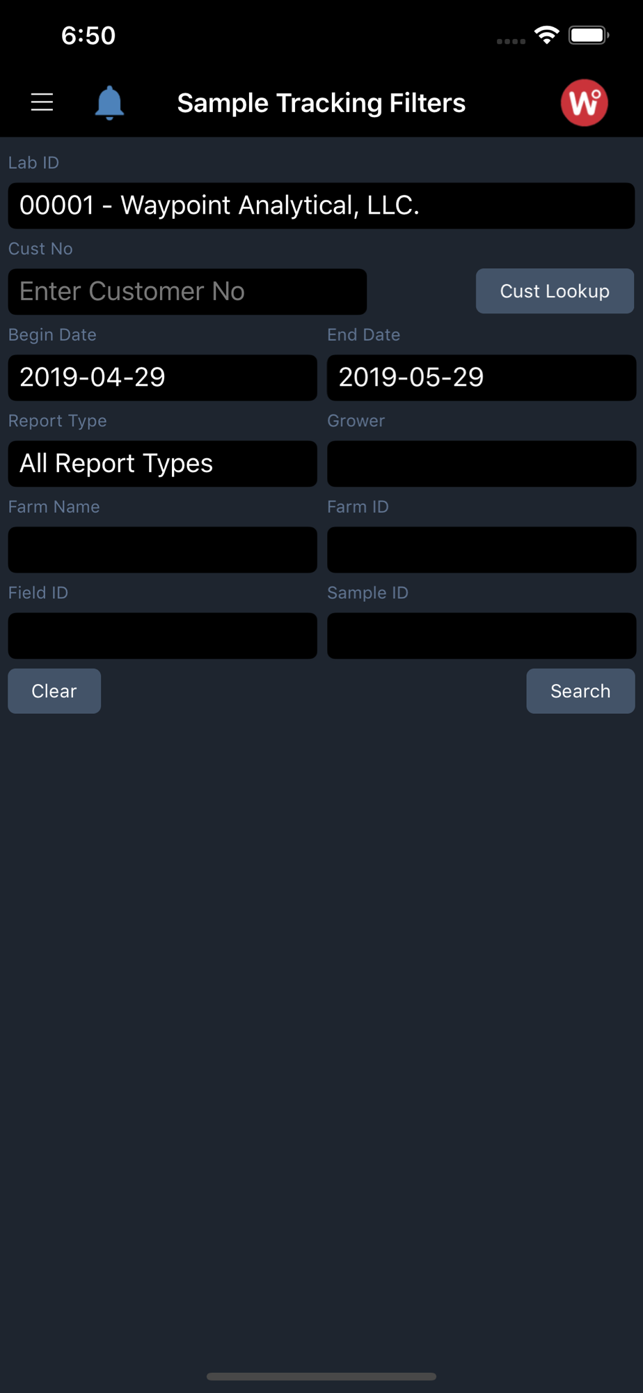 The Waypoint Analytical Mobile App is a tool for Waypoint Analytical clients for tracking sample flow through the lab, ordering supplies, streamlining submitting samples to the laboratory with electronic sample submittal forms, checking invoice and payment history, access to historical samples submitted to the laboratory and other helpful tools.