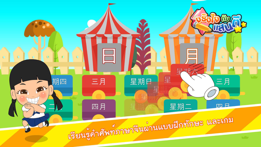 - เรียนรู้คำศัพท์ภาษาจีนเกี่ยวกับตัวเลข วันต่างๆ และเดือนทั้ง 12ผ่านแบบฝึกทักษะ และเกม