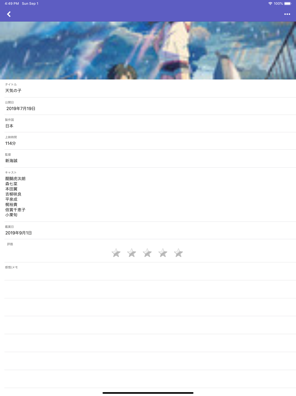 ・映画の感想やメモを記録することができます。