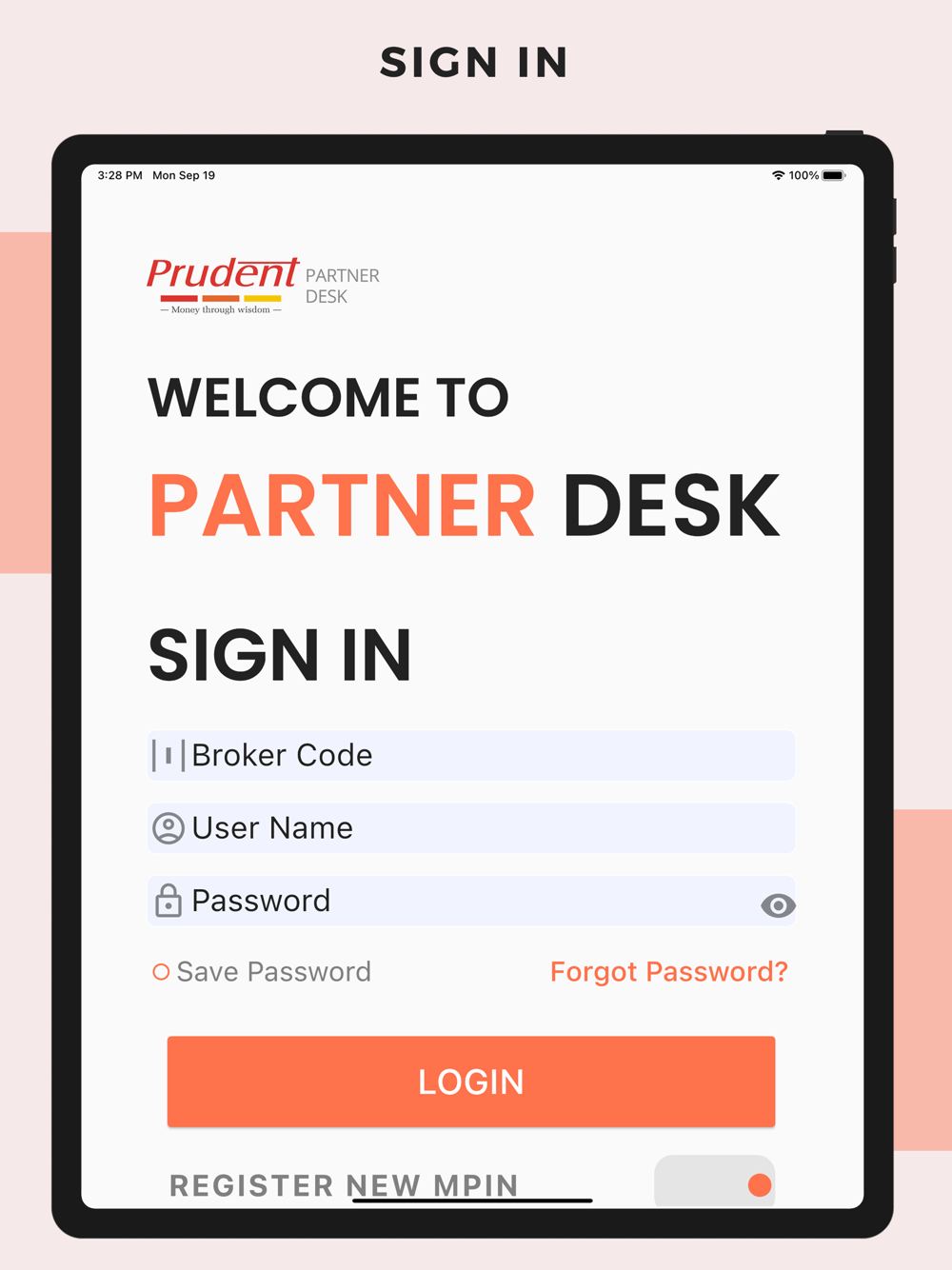 Note: To access this application you have to use your Registered Broker Code, Login Id and Password of Partner Desk.