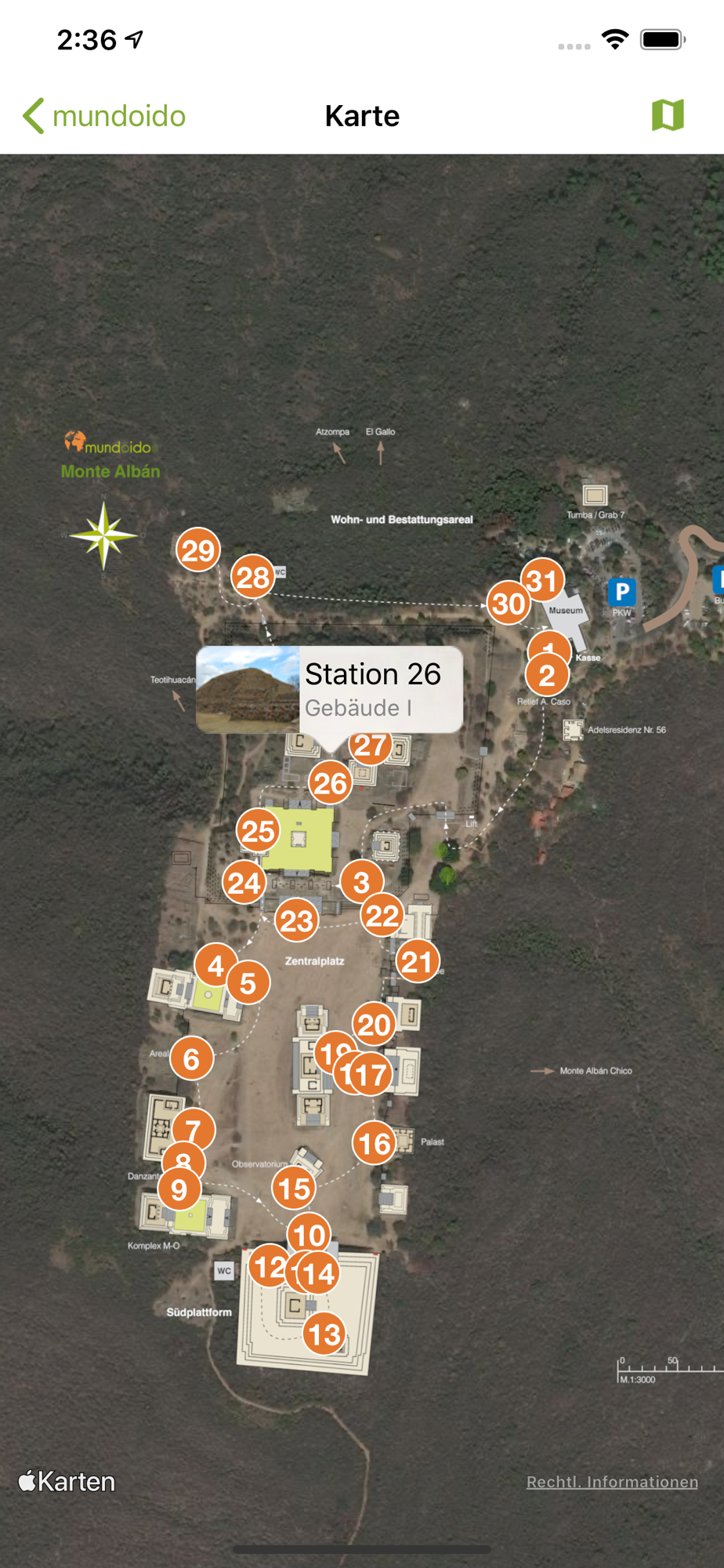 Monte Albán ist eine der ältesten Städte Mittelamerikas. Imposant thront die alte Hauptstadt der Zapoteken auf einem Berg über dem Tal von Oaxaca. In einem faszinierenden, 82-minütigem Rundgang führt die mundoido-App durch die Geschichte dieses prähispanischen Volkes, vorbei an Pyramiden, Palästen und Gräbern der UNESCO-Welterbestätte. Anschaulich wird die Kultur der Zapoteken vorgestellt, wobei Archäologen und Forschungsreisende zu Wort kommen. Tolle Fotos illustrieren den Audioguide und unterhaltsame Exkurse gewähren spannende Einblicke in die zapotekische Götterwelt oder die kreative Küche Oaxacas – schon einmal geröstete Heuschrecken probiert?