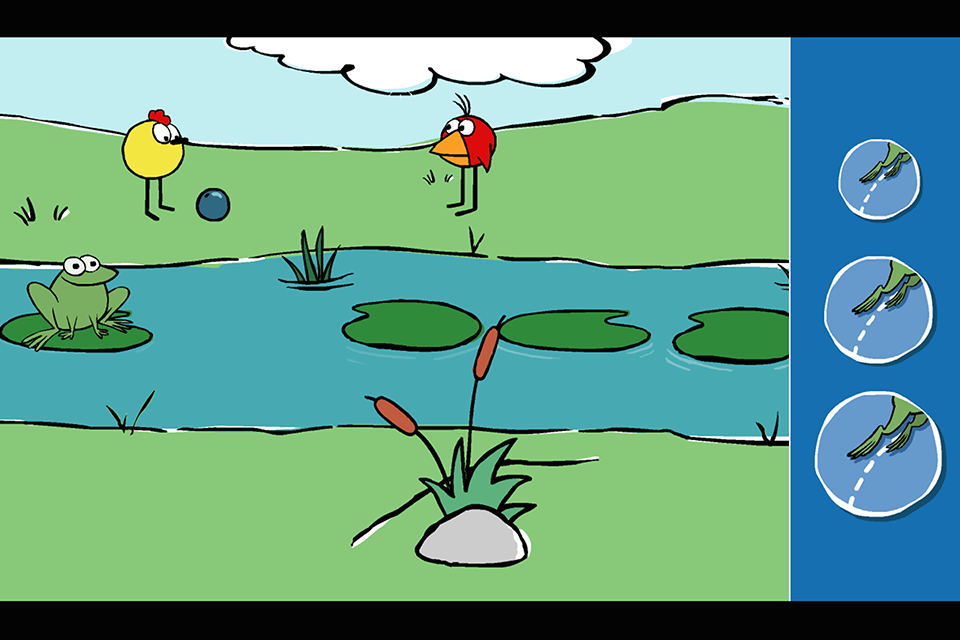 Tapping the different buttons lets Frog choose a small, medium or long jump. Missing a lily pad lands Frog in the water. But don't worry: she'll be ready to start again when she hops out a moment later!
