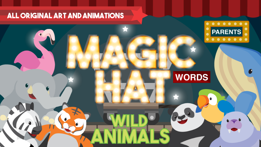 This app introduces kids to the Magic Hat and 3 wild animals from the full version: Elephant, Zebra, and Parrot!