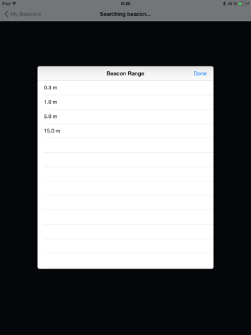 Simply launch the app, enter your PixLive Maker account credentials and you can directly modify the range of the beacons. which are near your. As simple as 1-2-3.