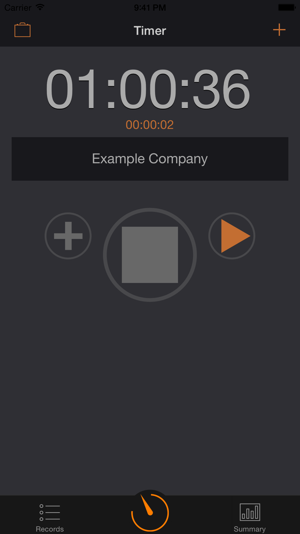 I. Open the app and click on „Stopwatch“ in the menu. Choose your employer or your project from the list and click on „Start“ as soon as you start working. Close the app.