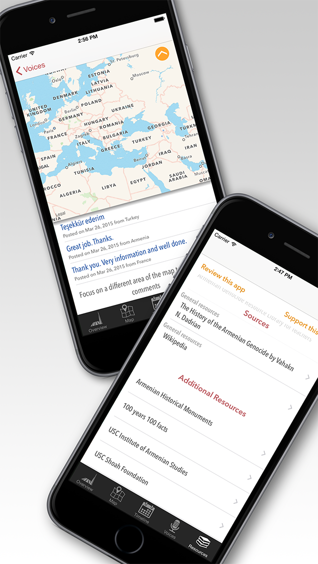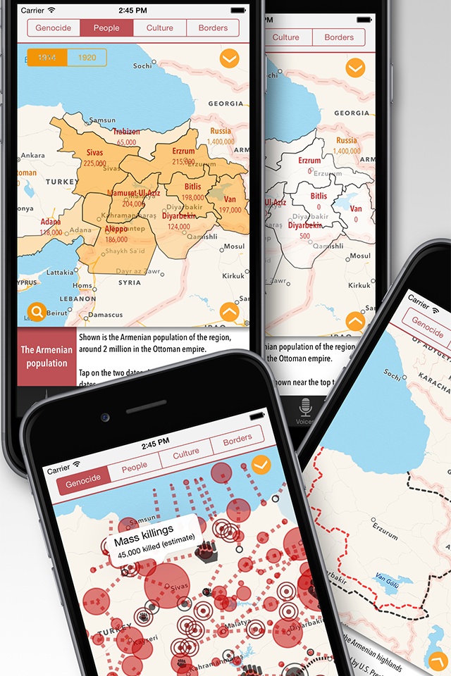 The Armenian Genocide app is a reference tool to raise awareness and teach about the first Genocide of the 20th century. With maps, a detailed timeline, quotes, survivor accounts, historic dispatches and news reports, the app provides an immersive experience of one of the most important human rights issues of history.