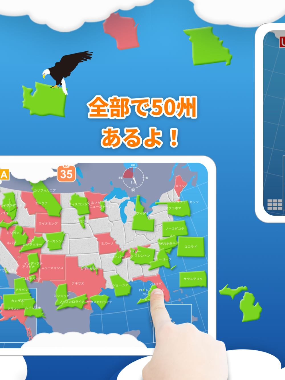 テレビや新聞などでよく聞く州の名前が、実際どこにあるかを遊びを通して学ぶことができます。