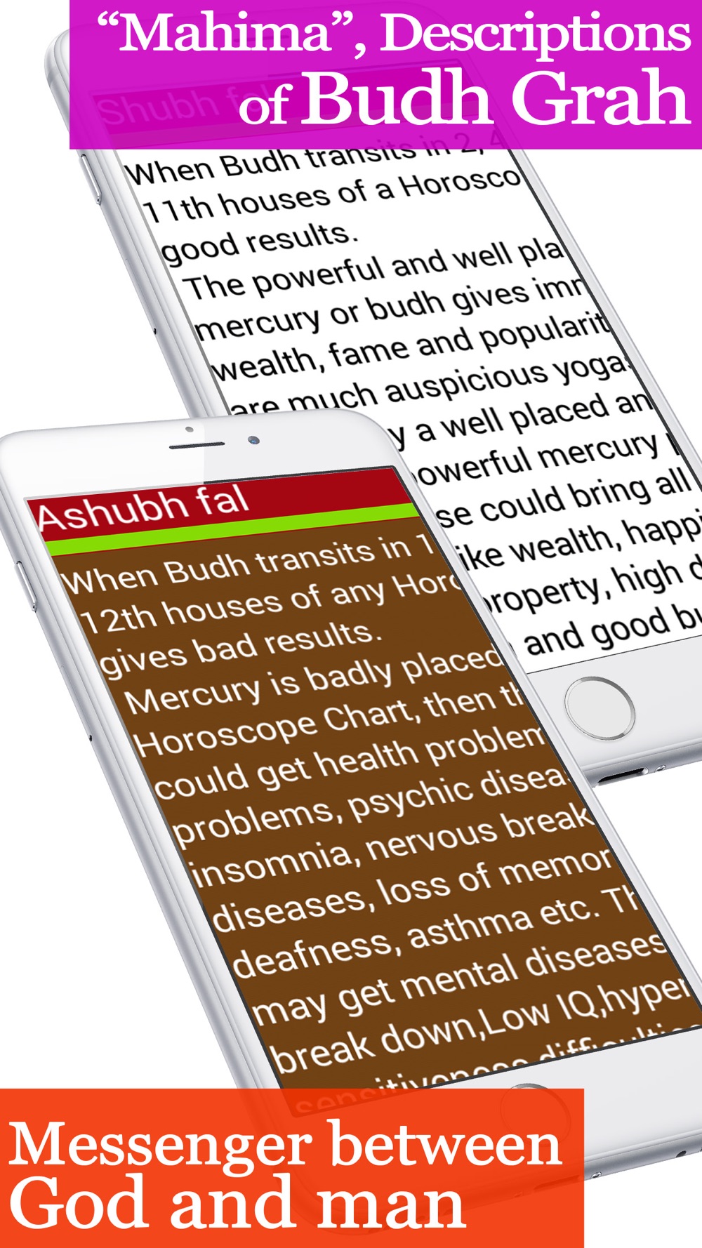 This app also give information about Budh Dosh & its remedy. Budh Mantras, Budh Stuti, Budh Shanti pathh, Budh Kavach, Budh Stotra are also included in this application.