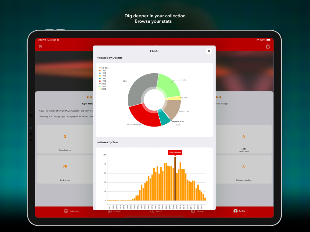 Discographic is the best and most complete vinyl collector app currently available with Apple Music, Spotify integration & Last.fm scrobbling.