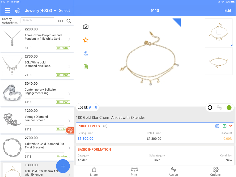 ManageDiamonds’ intelligent inventory management software will manage, secure and market your inventory. Put an end to manually managing inventory quantities into spreadsheets. Scan RFID tags and/or QR codes of items to perform accurate inventory count. Instantly share inventory details and images via mobile app.