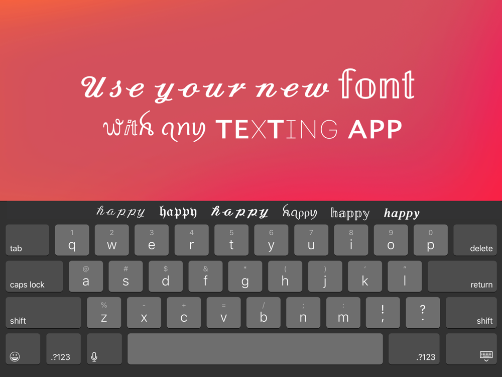Want to impress your Friends? Font Keyboards has just added a brand new custom keyboard. You can now access all of our 50 Funny Fonts anywhere on your device. Use our fonts in your emails, text messages, facebook, contacts and anywhere you can enter text! No other app gives you as many fonts for free!