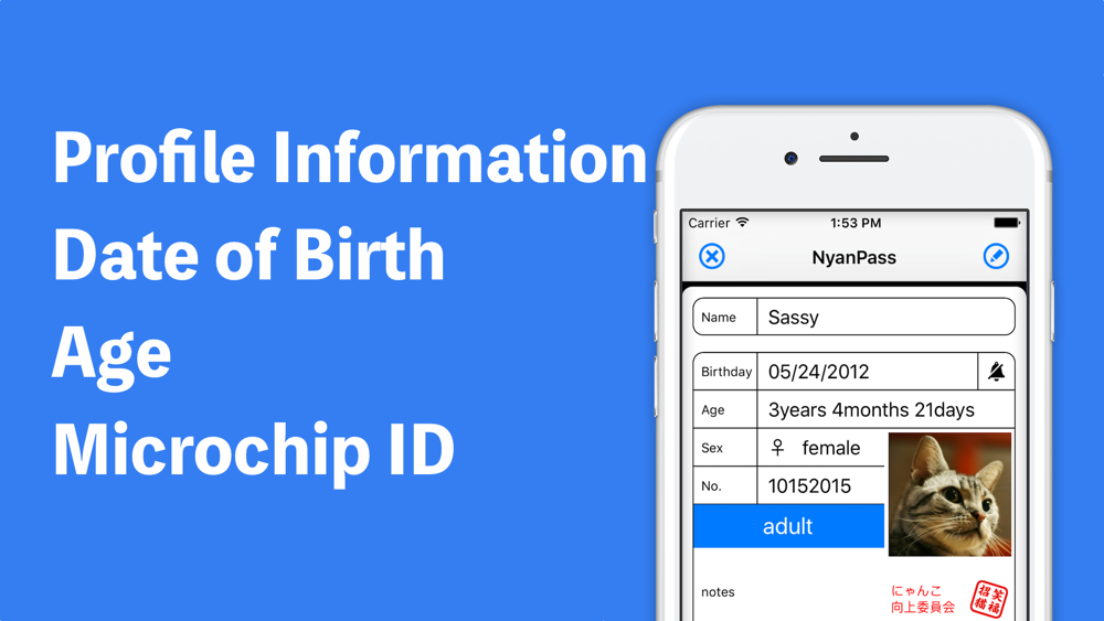 NyanPass is easy-to-manage application information of domestic cat.