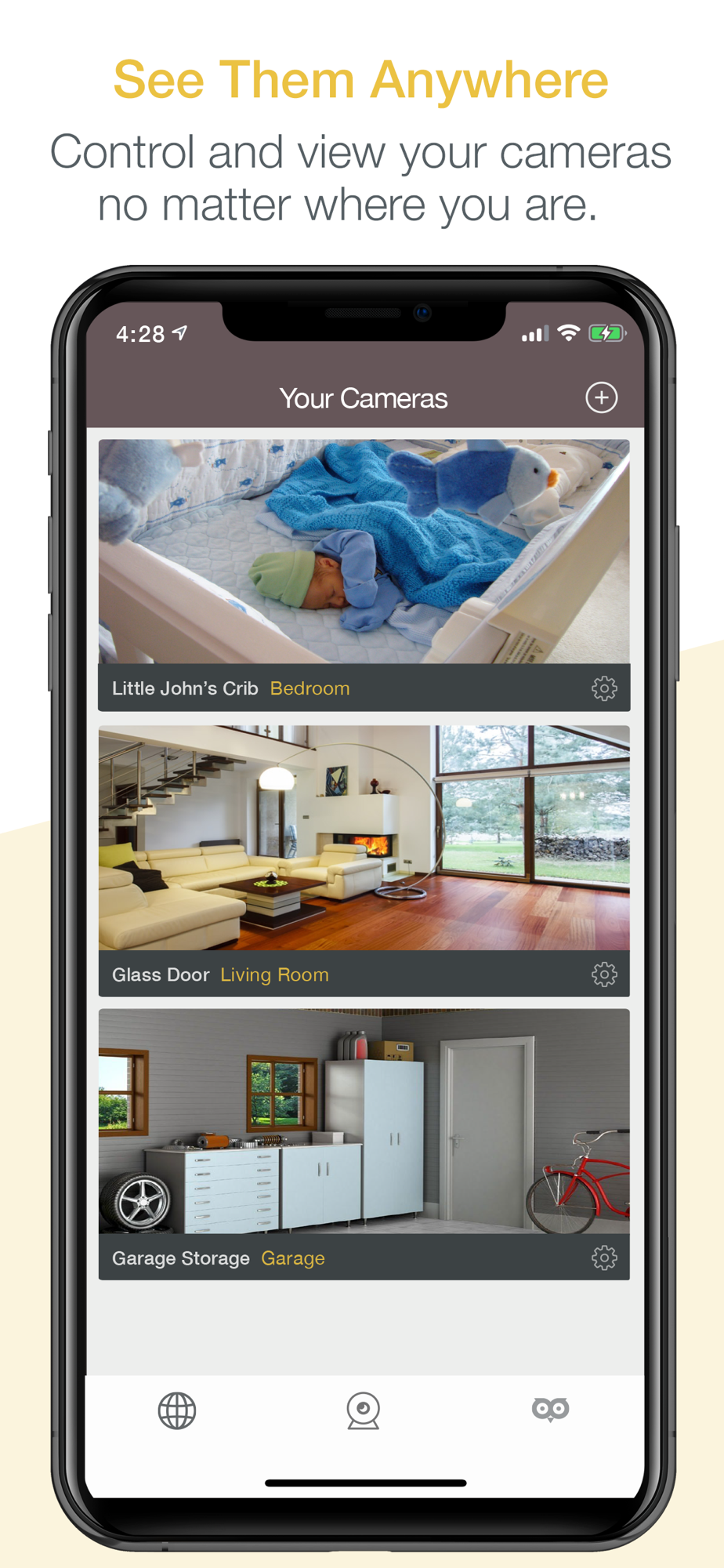 OWLR is working on connecting to all baby monitoring and security cameras that allow for audio listen and push-to-talk (PTT). If enabled, you can speak to your pet, hear what your baby is burbling or speak to the delivery guy at the front door - all from your iPhone app.
