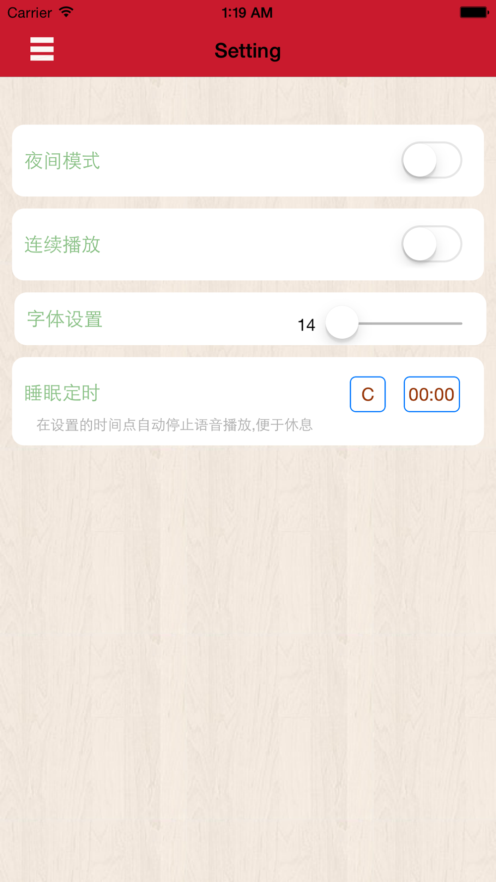 睡眠定时,在设置的时间点停止朗读内容,便于休息