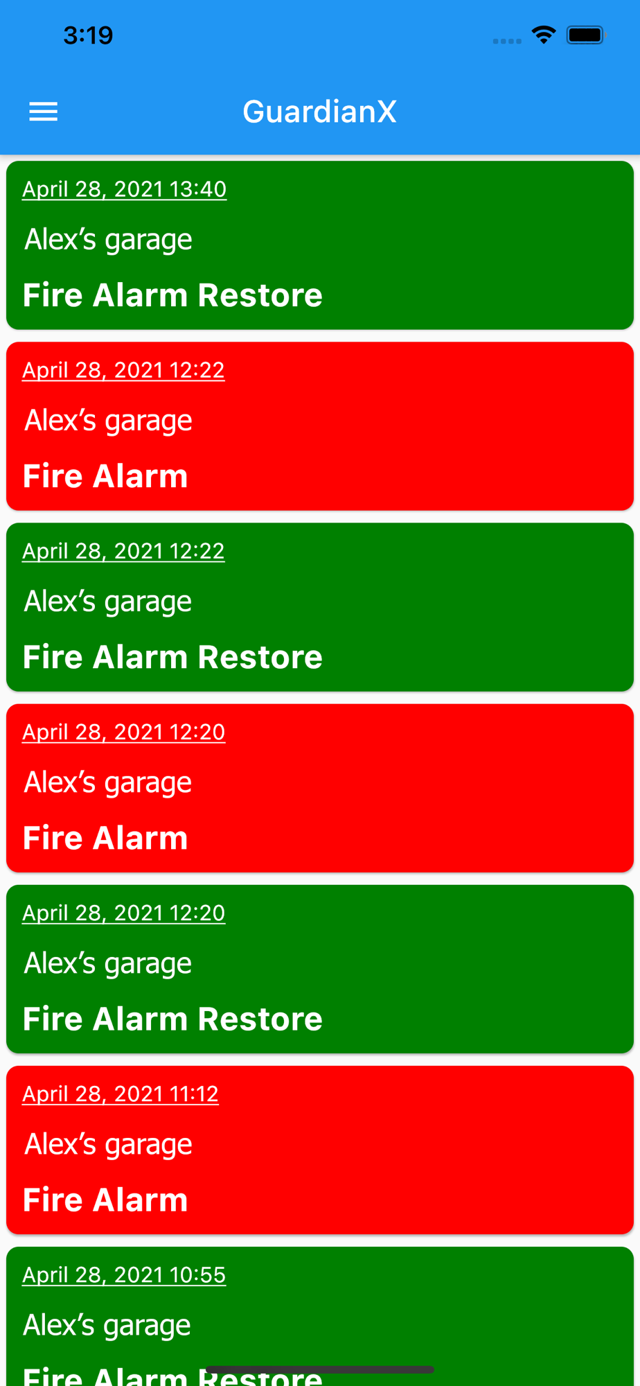 Client Feedback: Tapping on a received Event with Alarm priority will open a Dialog Box providing the Client with an option to send a Feedback Notification to the Central Station via the GPRS Server (e.g. a request to send a manned Patrol to investigate the alarm source).