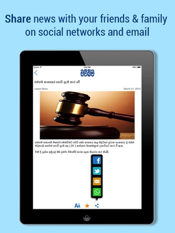Mawbima is a Sinhala language newspaper providing news from Sri Lanka. The paper is the part of the Ceylone Today Group. Mawbima started Publishing in 2011. In this App you can find news from different categories like Latest News, International News, Sports, Sports, News for youth, News for women etc. With this initiative Mawbima hopes to cater to the new & changing breed of users who want news on the go. Users will be able to read their favorite news on their iPhones & iPads. Users will be able to save their favorite articles to read it at a later stage. Users can also share the news with their friends & family via social media. We hope that you will appreciate our endeavor. Do get in touch for suggestions & queries.