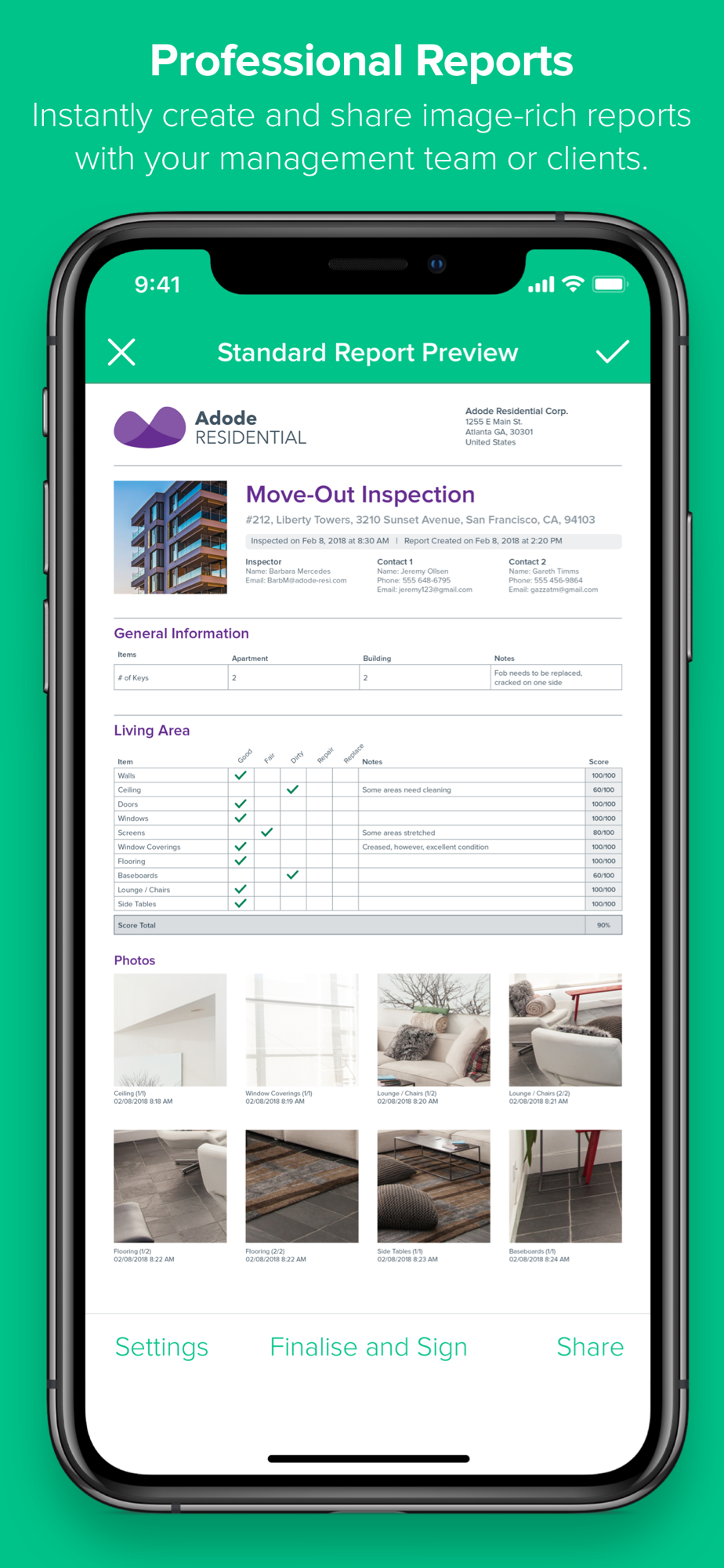 - REPORTING: Create compelling, branded reports right from your device