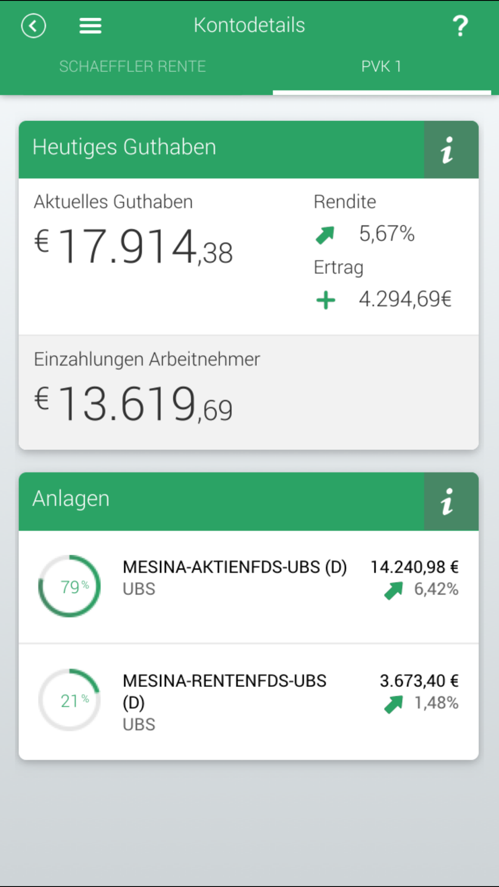 Behalten Sie Ihre Vorsorge und deren Entwicklung im Auge. Simulieren Sie Ihr Einkommen im Rentenalter und rufen Sie aktuelle Kontenauszüge ab: Die Schaeffler Zukunftsvorsorge-App ermöglicht Ihnen den einfachen Überblick über Ihre Schaeffler Altersvorsorgemodelle, mobil und rund um die Uhr.