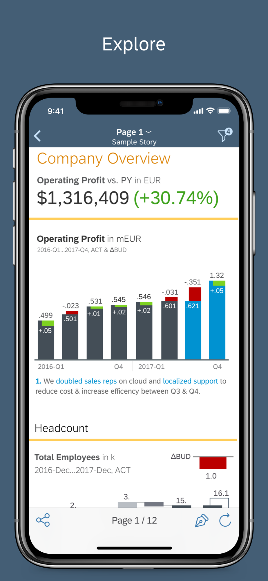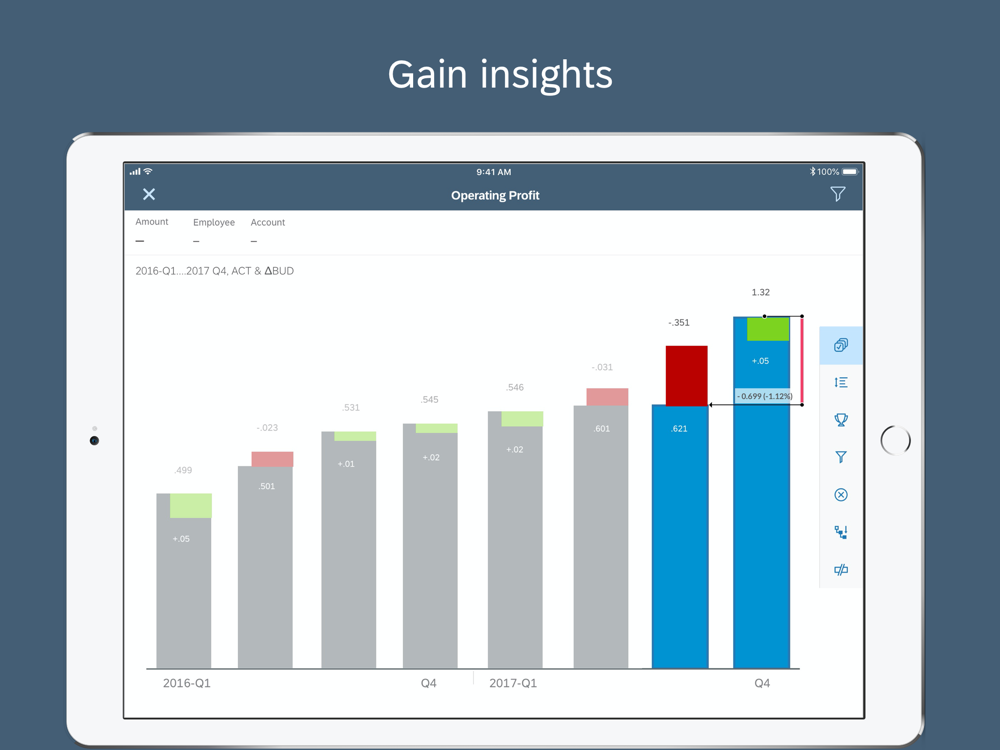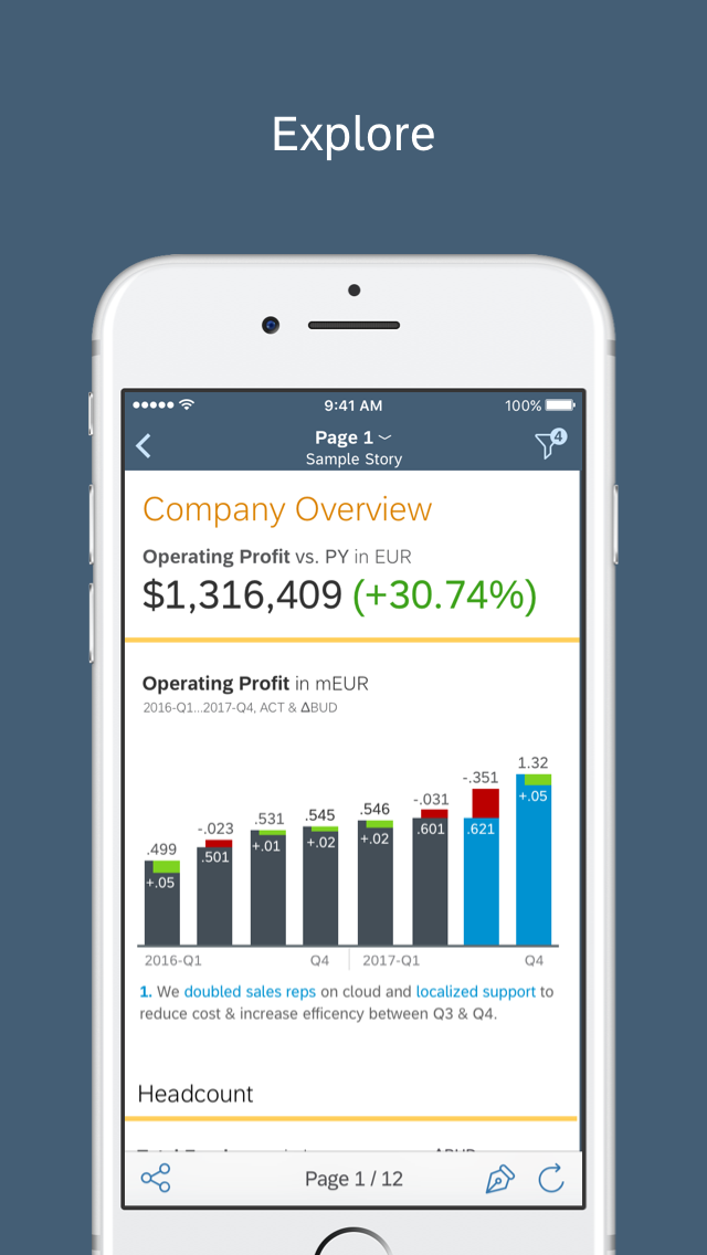 With the SAP Analytics Cloud mobile app for the iPhone and iPad, you have access to business data anywhere and anytime. This app connects to the SAP Analytics Cloud solution and enables you to: