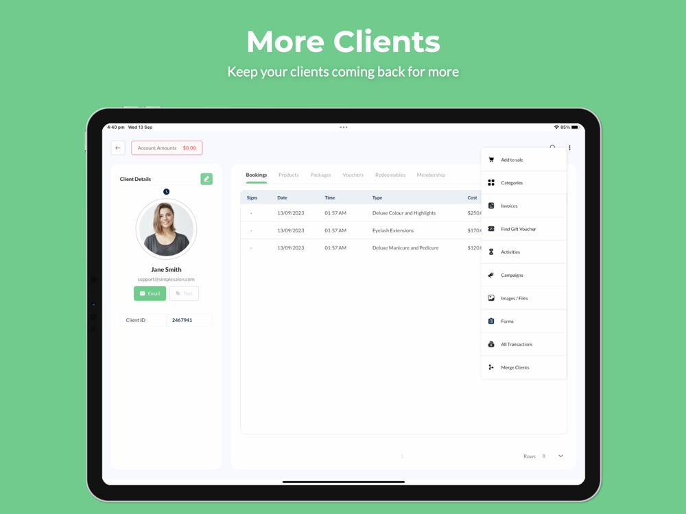 Simple Salon is a leading provider of proven cutting edge cloud-based salon software. For any size of salon, from a single operator to a multi-salon group, Simple Salon is the best way to grow your business. Simple Salon is the simplest way to start using a computer to enhance your hair or beauty salon. It helps you manage your appointments, record client details and keep an eye on the performance of your business. It’s extremely easy to setup and to start using straight away.