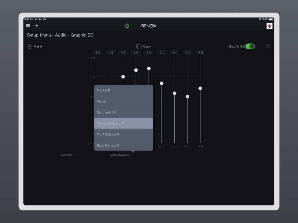 Control the basic functions of your Denon product with power, volume, input and settings.