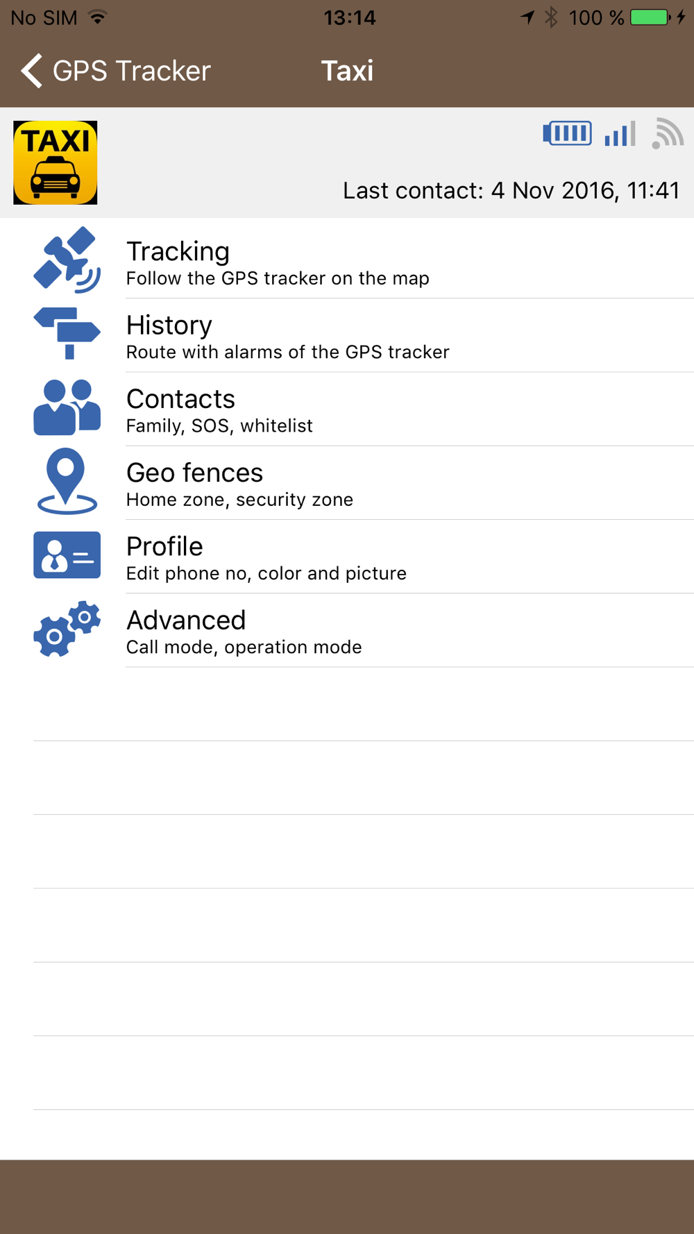 After installing one or several GPS trackers the position and history of the tracker can be viewed on your iPhone and iPad. Furthermore all settings can be configured.